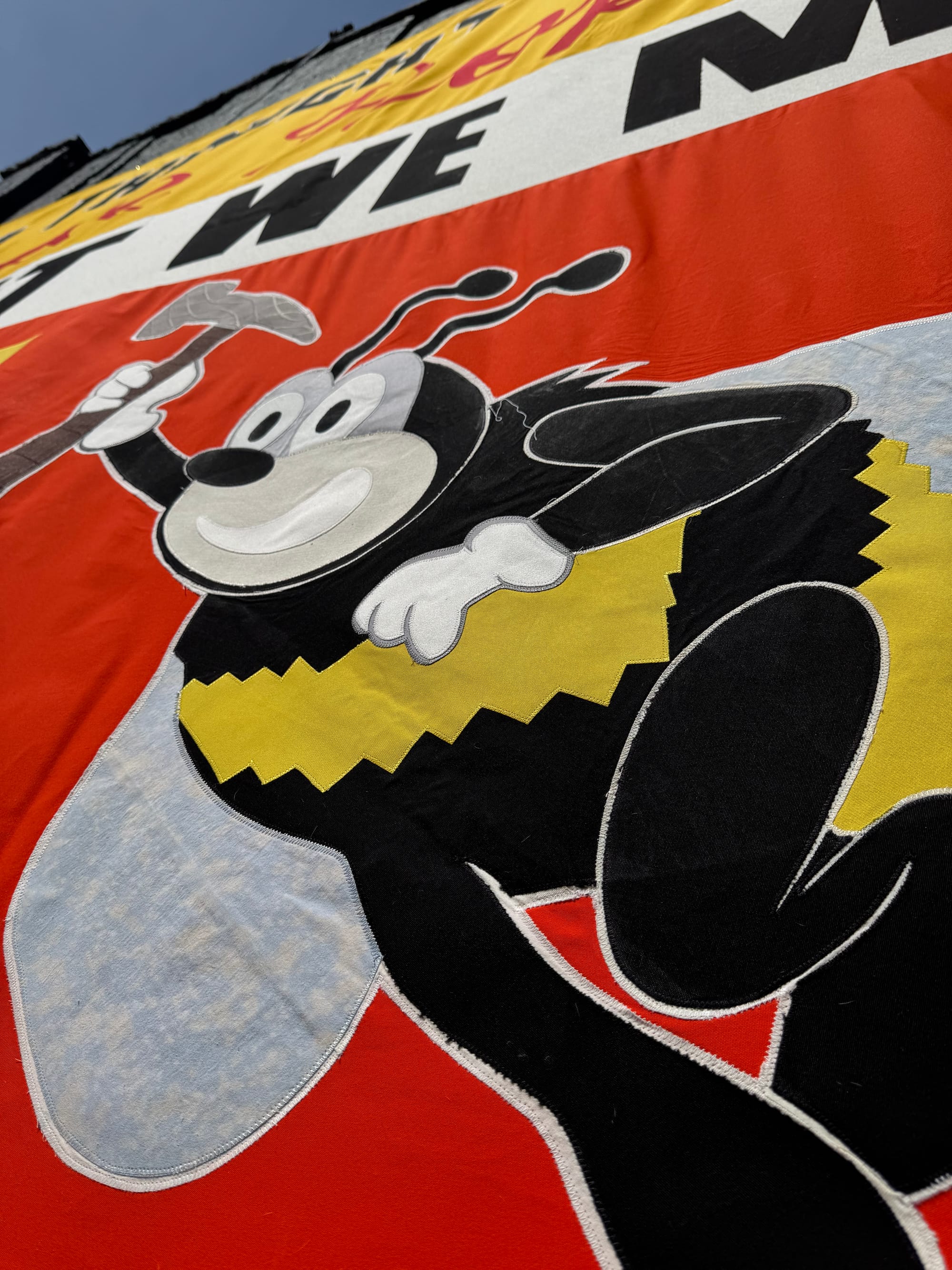 I’ve covered her work for years and been one of the few journalists she’s offered interviews to, preferring to normally let her work speak for itself. Her catalogue often consists of words sewn into flags and hung from derelict homes or recreating fading liquor store signs to be preserved forever. It’s familiar for anyone that has driven around the city, which is covered in hand-painted signs in a bevy of styles. Her work speaks to us in a language we already know well.