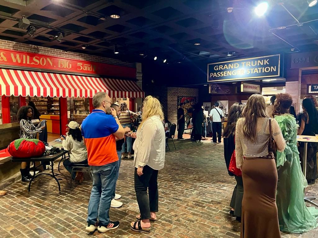 As much as I love learning about different creative endeavors, one of my favorite aspects of Drinks x Design is visiting different locations throughout the area. Many of these places I’d never heard of before. Some are normally inaccessible to the public. Others I’d just never gotten around to visiting or hadn’t been to in a while. In the case of the Detroit Historical Museum, I’m sad to say it had been years since my last visit; many of the exhibits felt new to me. In between checking out the creative vendors and reconnecting with professional acquaintances (the networking is great at these events), I perused the museum’s Motor City Music exhibit, which highlighted Detroit contributions to Motown and techno. Across the way, I also checked out its America’s Motor City automobile exhibit, which had displays from the earliest days of the auto industry and a replica factory set up. The museum’s darling Streets of Old Detroit exhibit features old-timey streets and storefronts representing different historical periods of Detroit, complete with cobblestone streets, an apothecary, and barbershop.