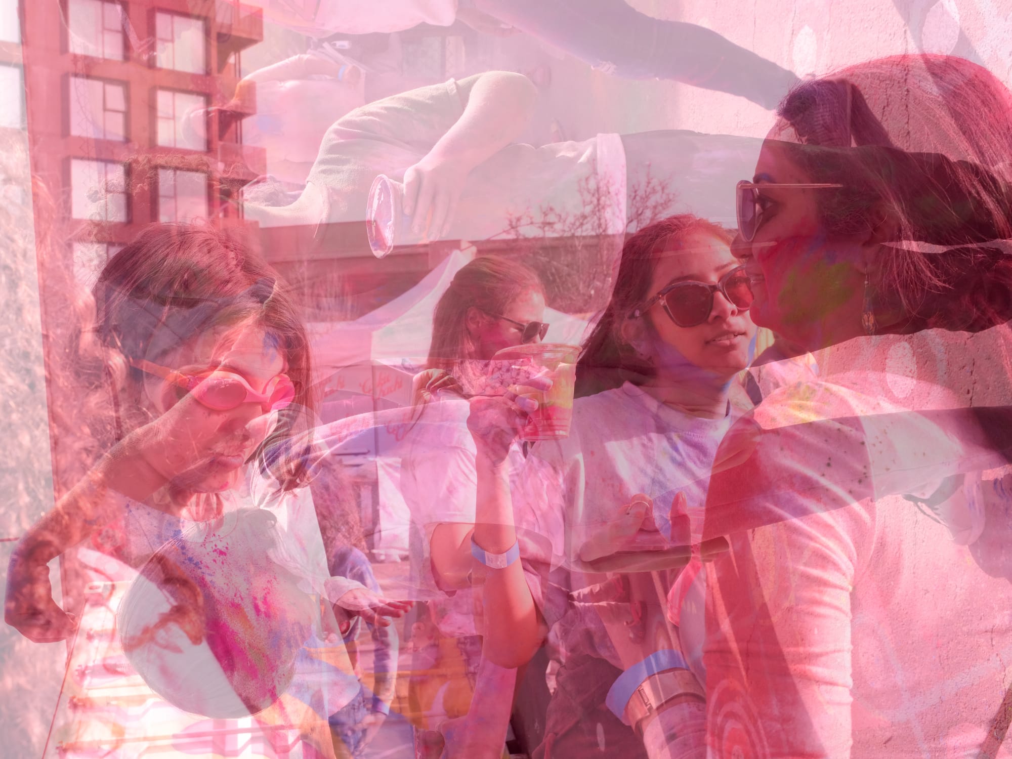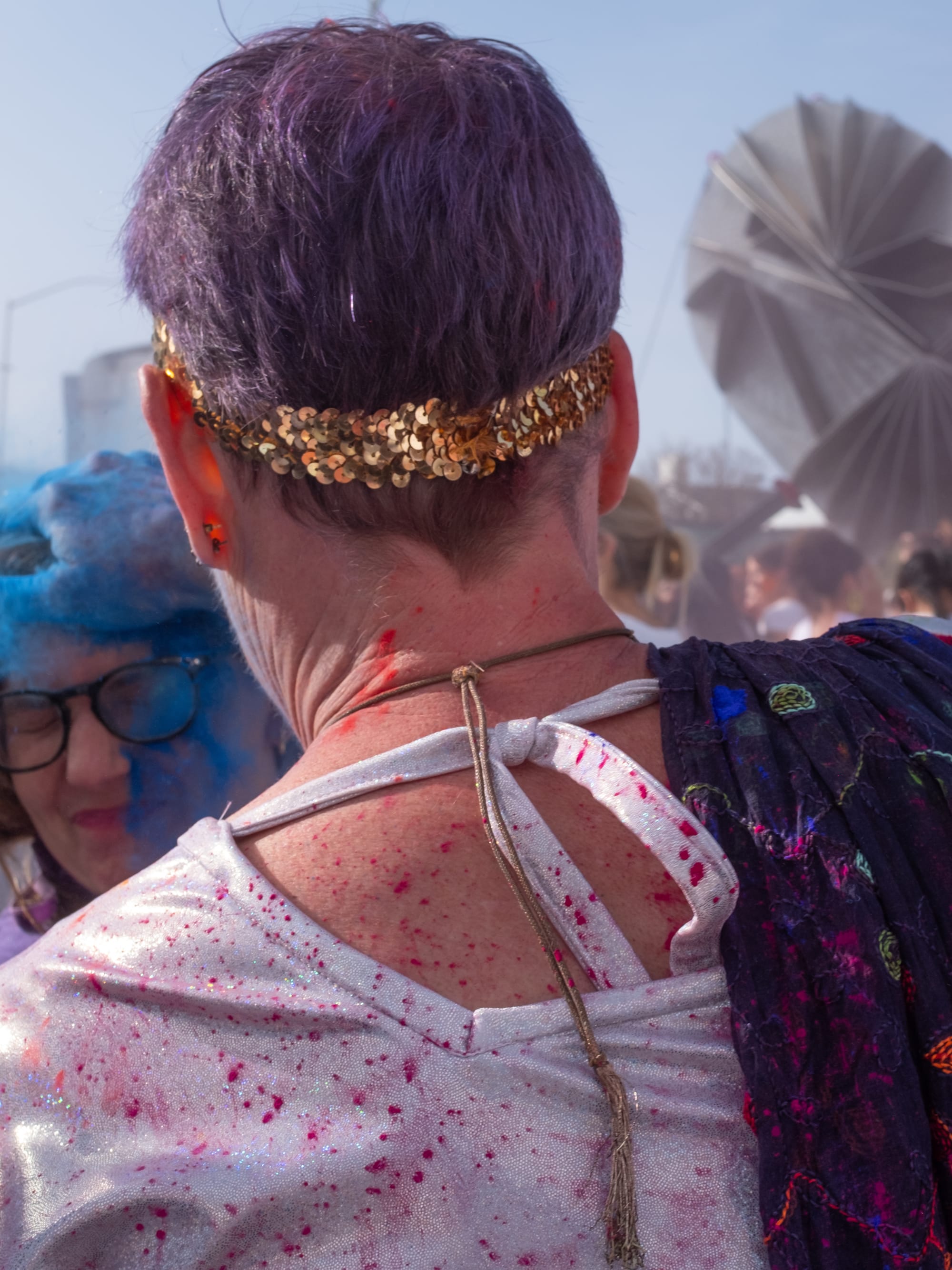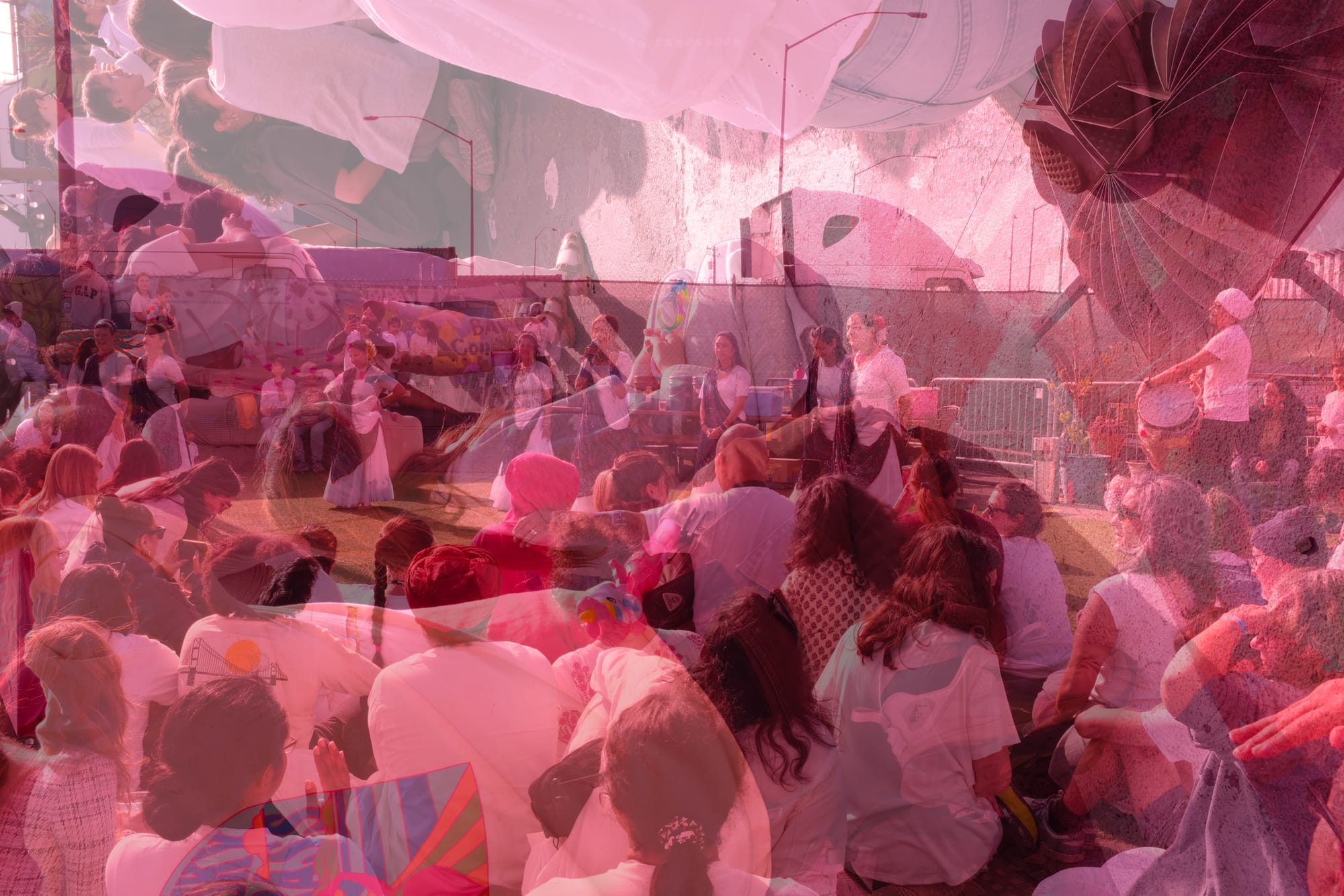A handful of smart, prepared souls came armed, with ziplocks for phones, bandanas or face masks, and protective eye gear not essential for visibility. We left with phone ports crusted (Reddit pro tip: compressed air), glasses obscured, camera an entirely new color, and deeply stained mucus—not to mention a month’s worth of dust for my apartment floors. We also walked away, dusting the sidewalk in brilliance as the sun set, with young BART-bound families in tow, ready to share that color with the drab floors of our transit.
