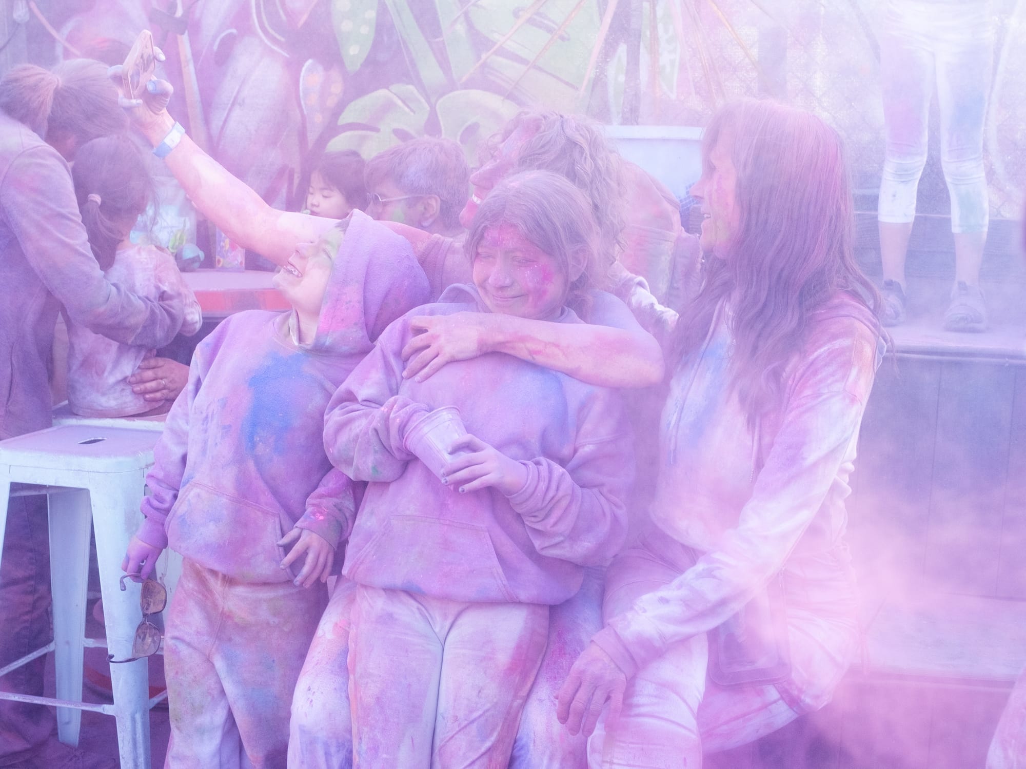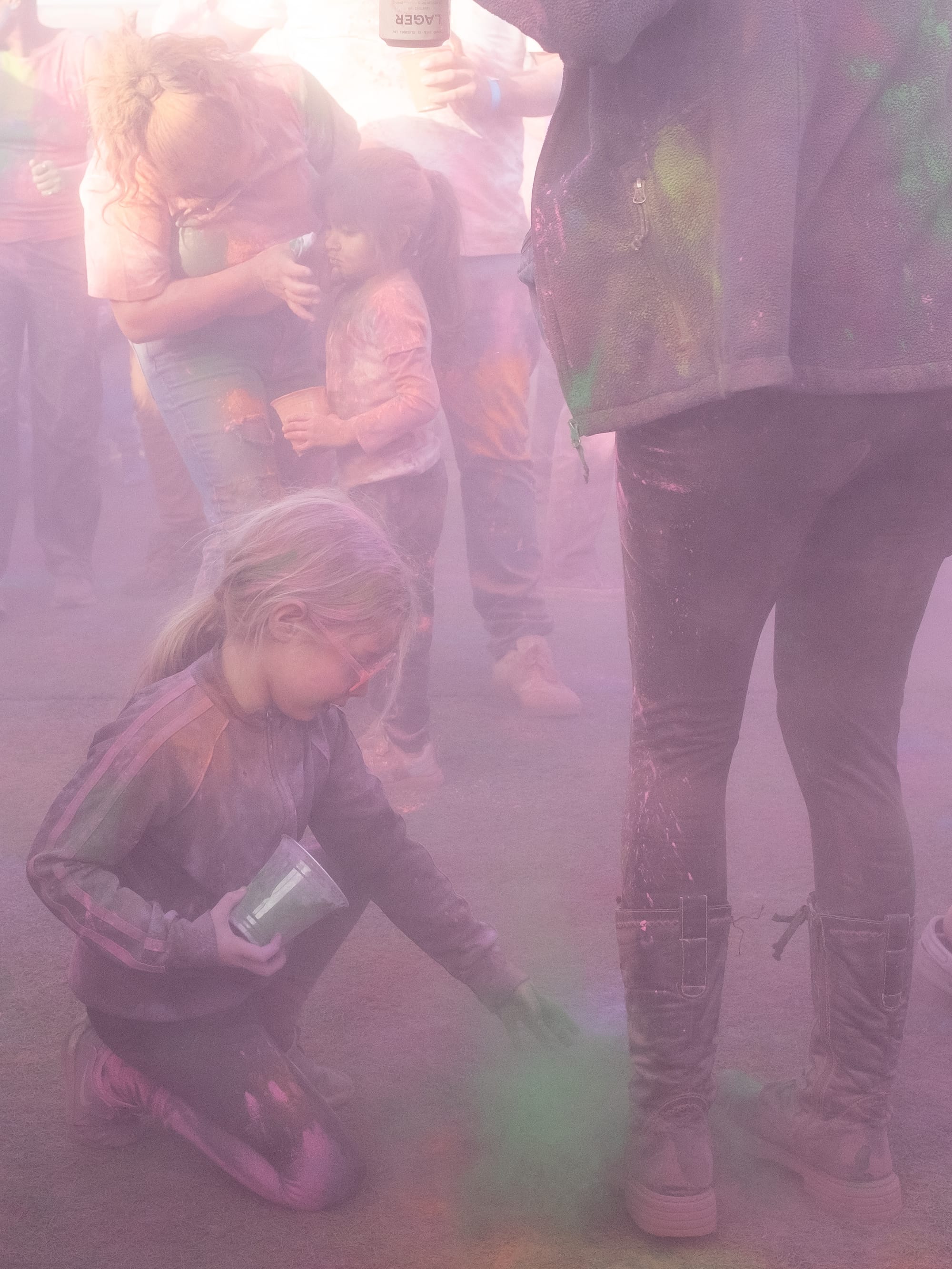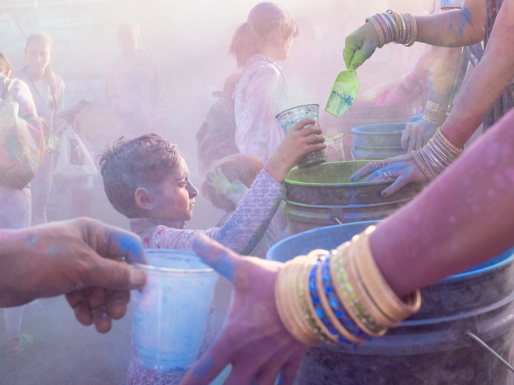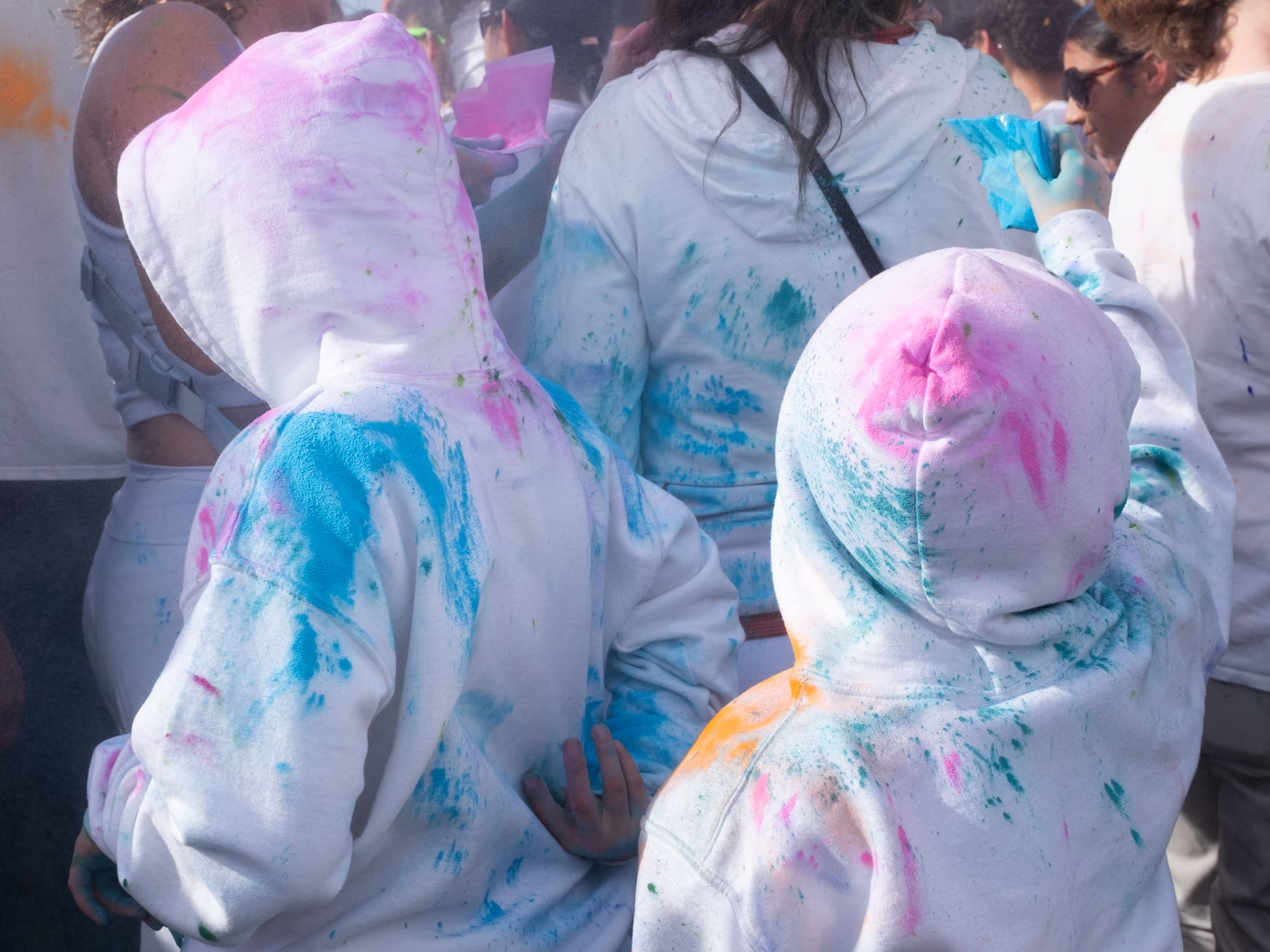 As a boisterous crowd heavily weighted towards the kiddos, visibility and spatial awareness were not at the forefront, but good spirits, as belied by big smiles and mimicked dance moves, were on full display. As the dance performance drew to a close we were invited to join in the dancing—and notified that the color stations would be open shortly. Things were about to get messy.