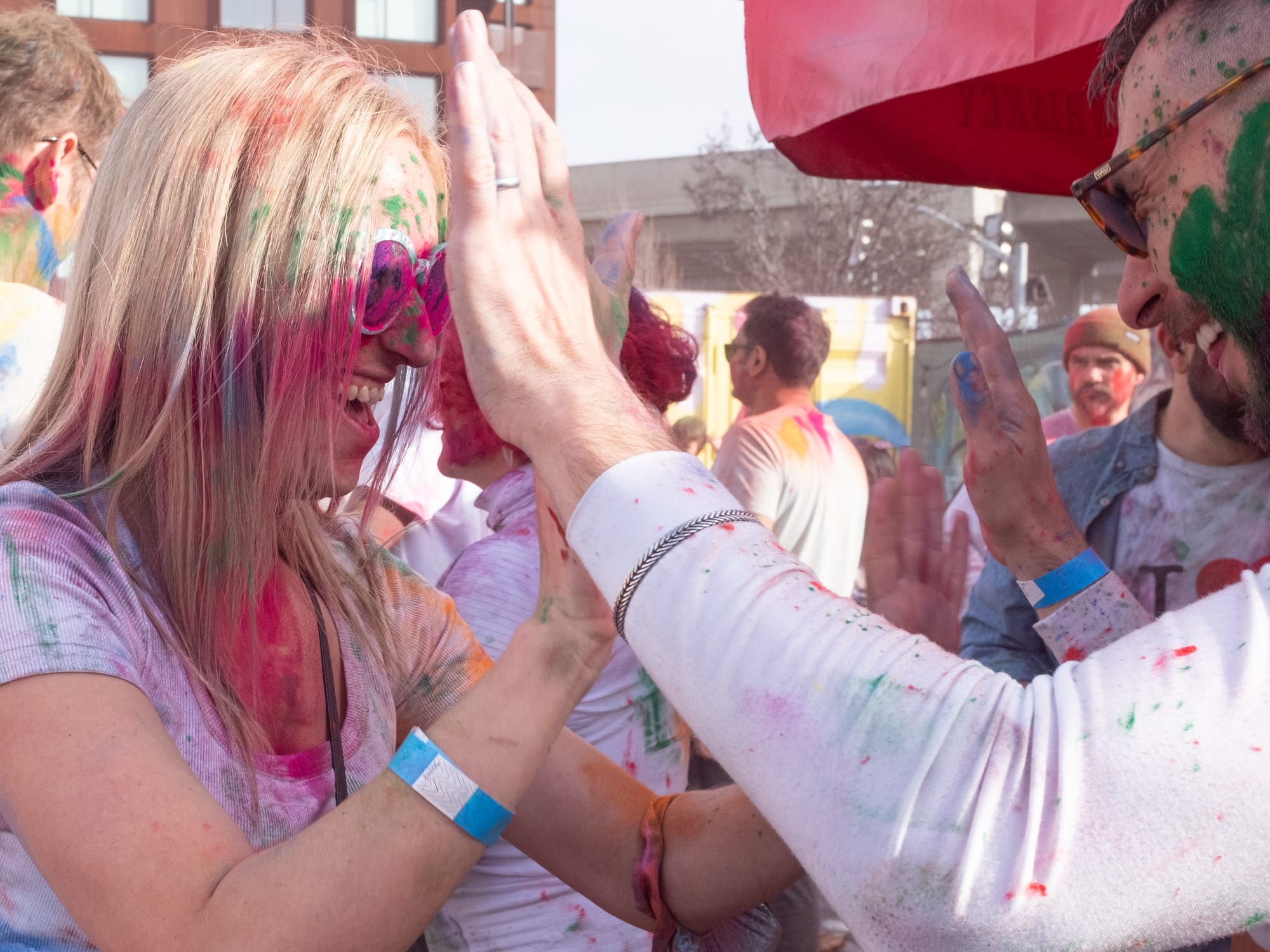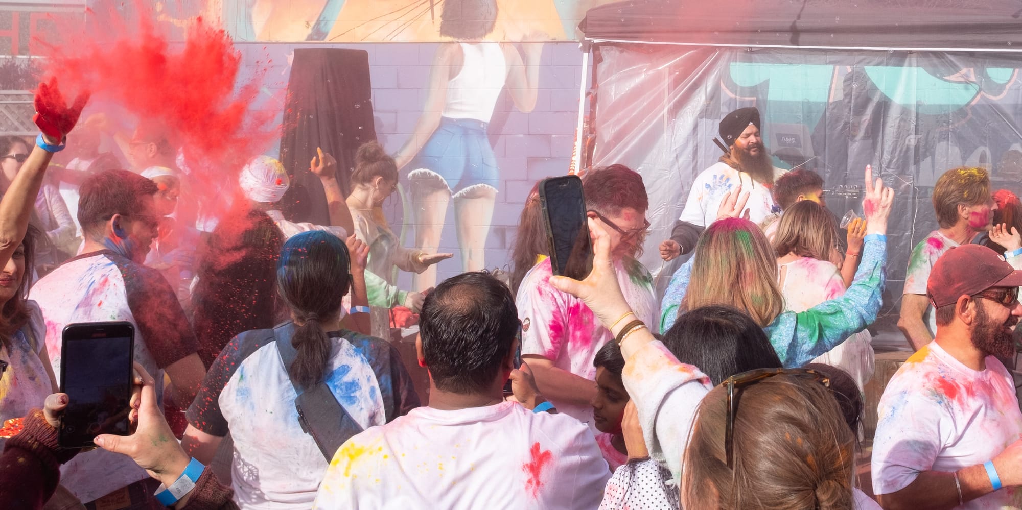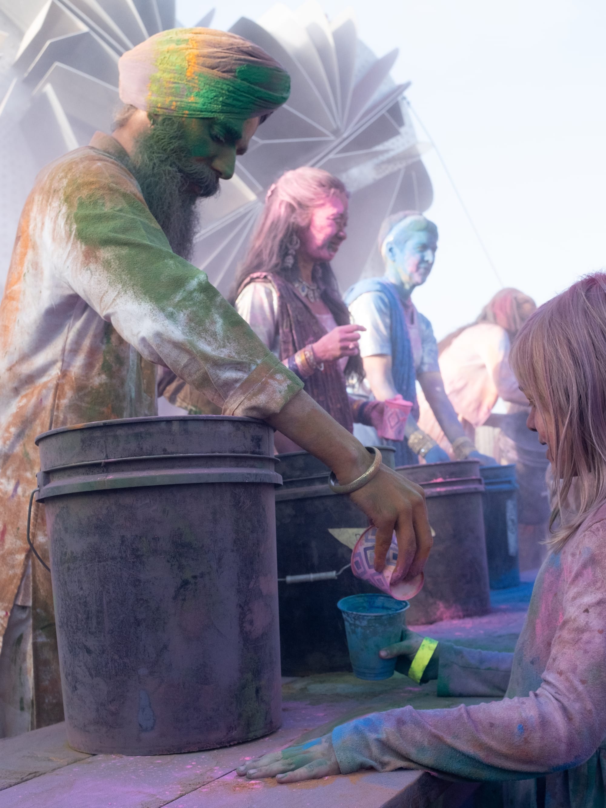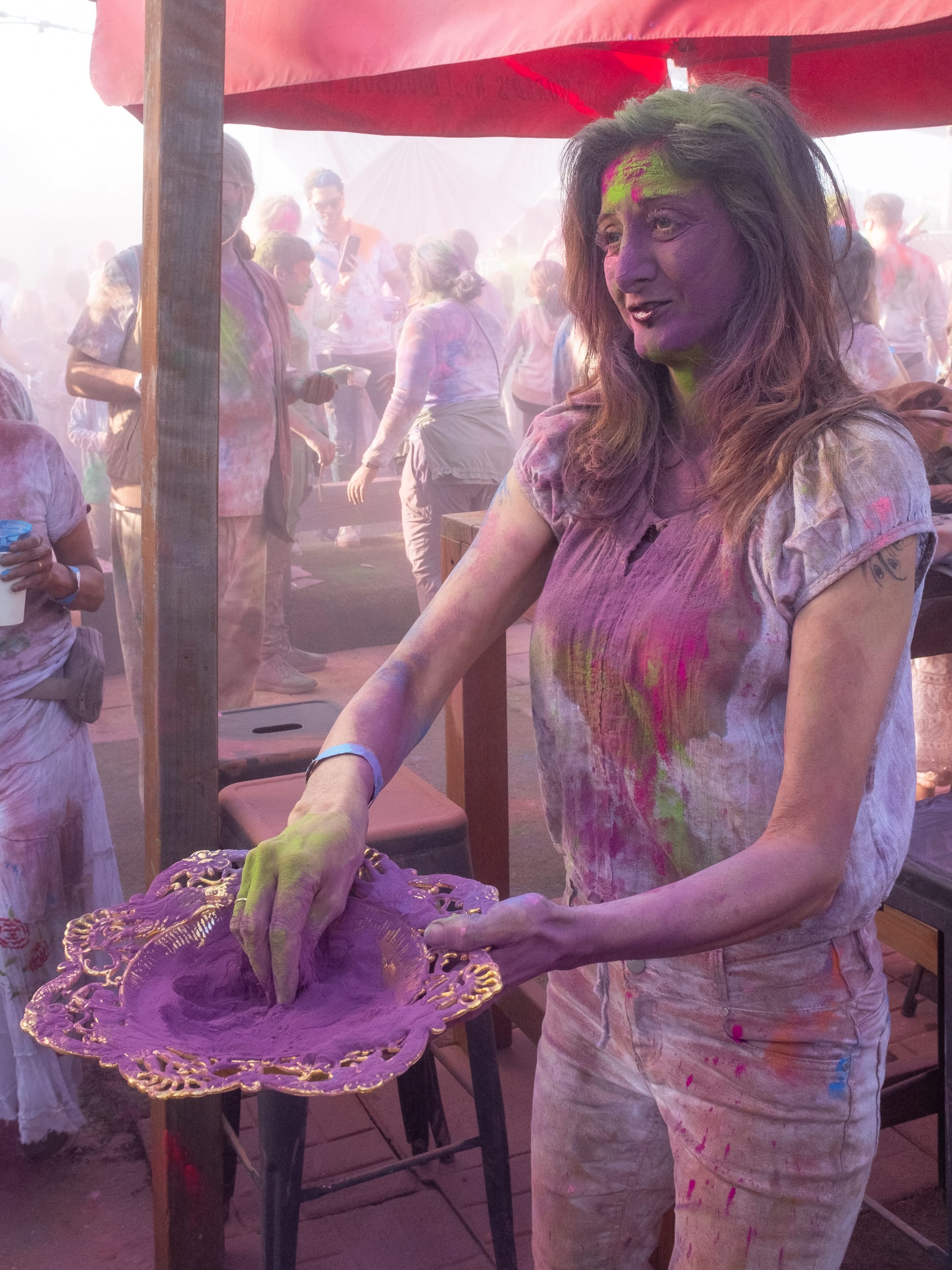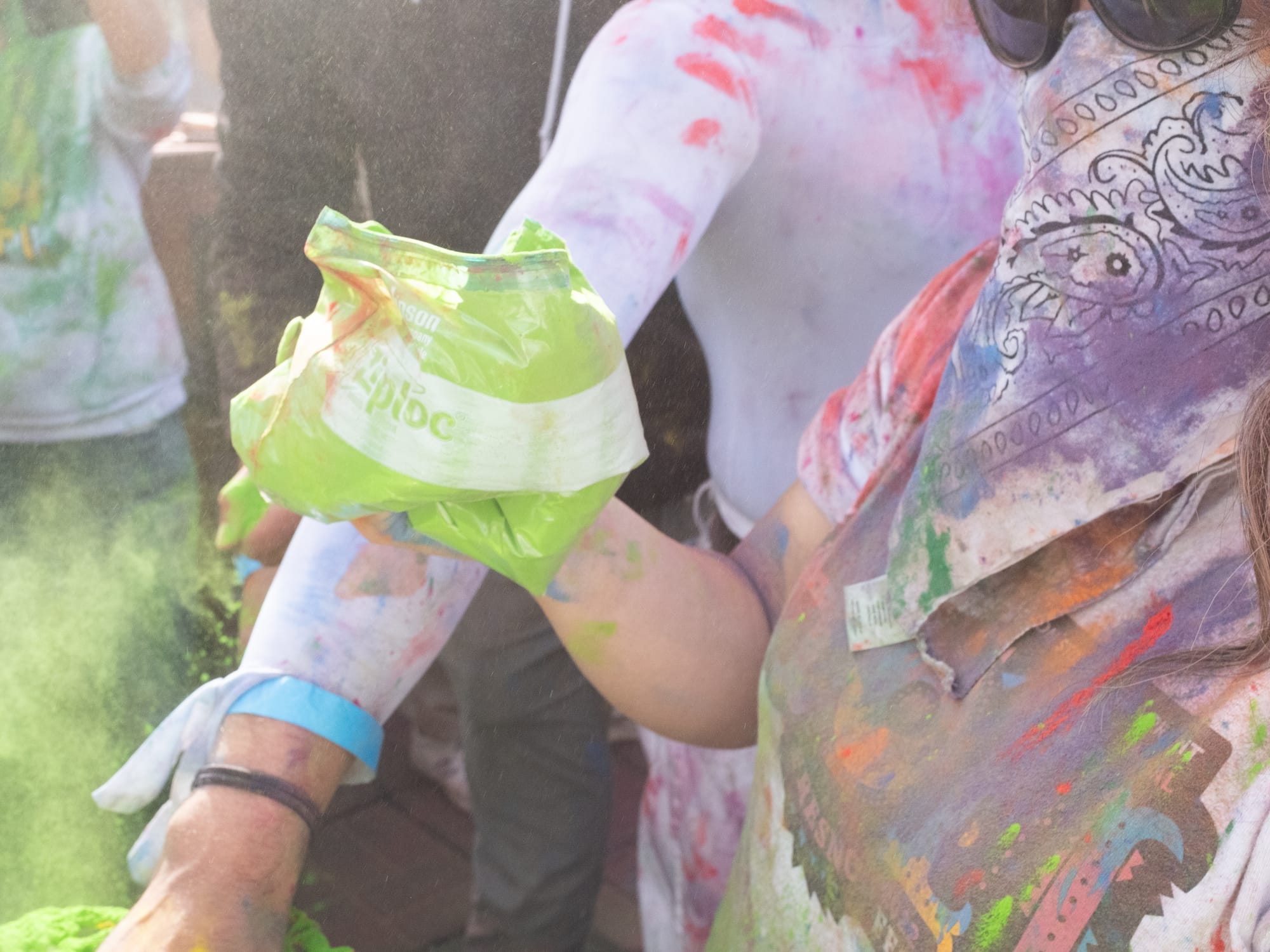 As a boisterous crowd heavily weighted towards the kiddos, visibility and spatial awareness were not at the forefront, but good spirits, as belied by big smiles and mimicked dance moves, were on full display. As the dance performance drew to a close we were invited to join in the dancing—and notified that the color stations would be open shortly. Things were about to get messy.