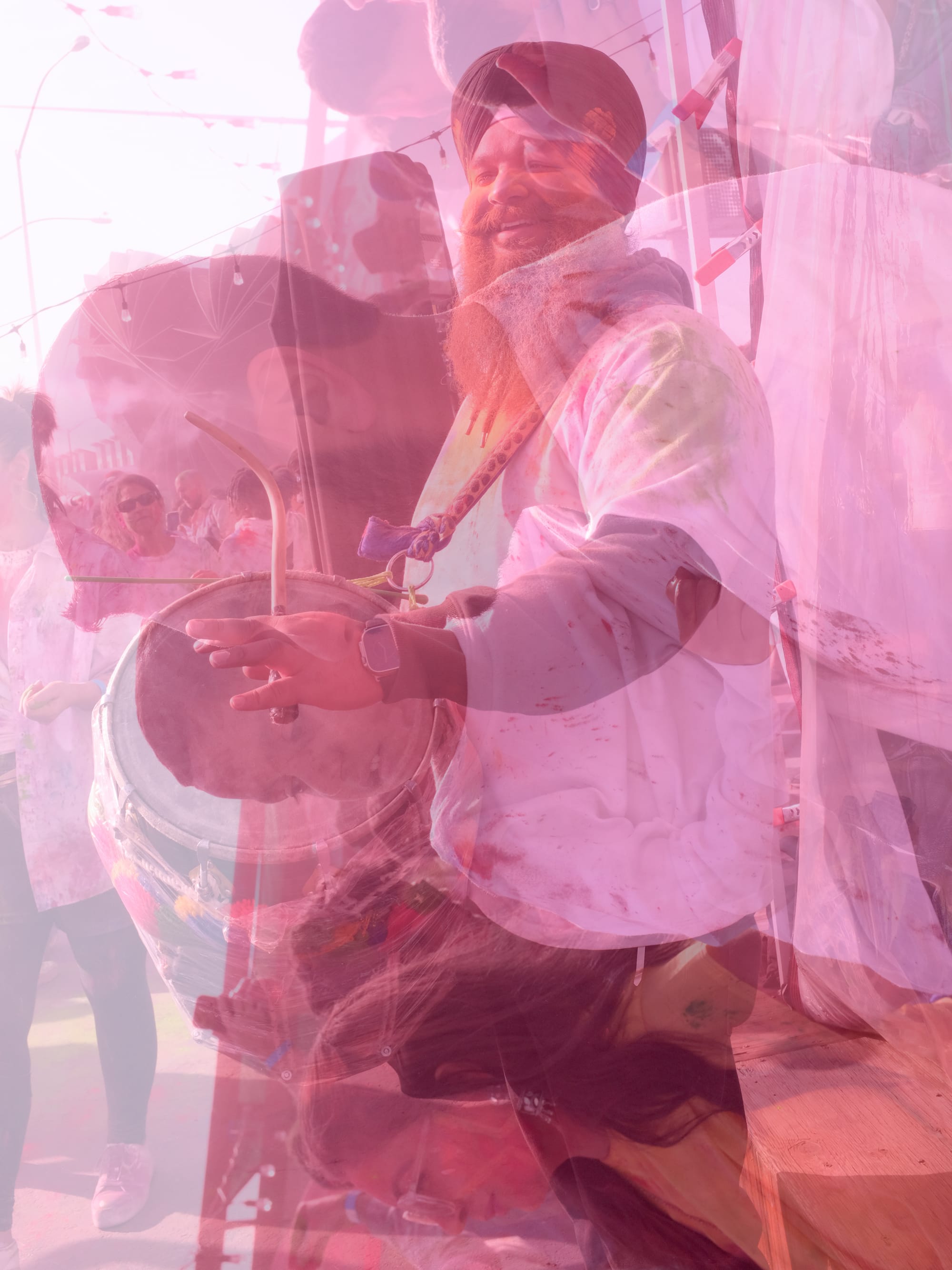 DJs spun a mix of Bhangra beats and local hyphy classics—with a dose of everyone’s favorite nepo-dudes to keep the party rock going, and with the help of some brightly hued powders, the fest was truly on. A celebration of spring, the brilliant color toss invites everyone’s playful side out, a yearning for the joy and carelessness of youth evident in each adult grin. Strangers shared and powder-fought in equal measure, with laughter and shrieks of pleasure audible even over the thumping speakers.