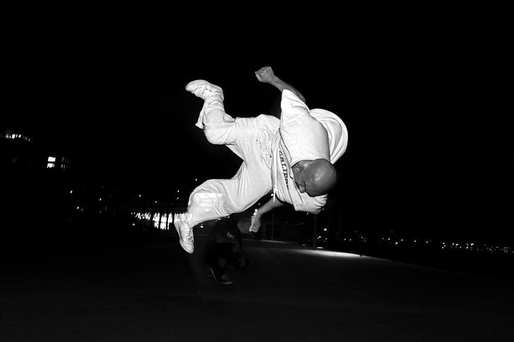 Ashim Hajra’s Bubbles Be Trickin’ takes a more direct approach to the theme. The image, a black-and-white shot of a man dressed in white, seems suspended in space at night. His form is both falling and flying, caught in a delicate balance between inertia and movement. In this piece, Hajra directly engages with the concept of momentum as something that exists in multiple states.