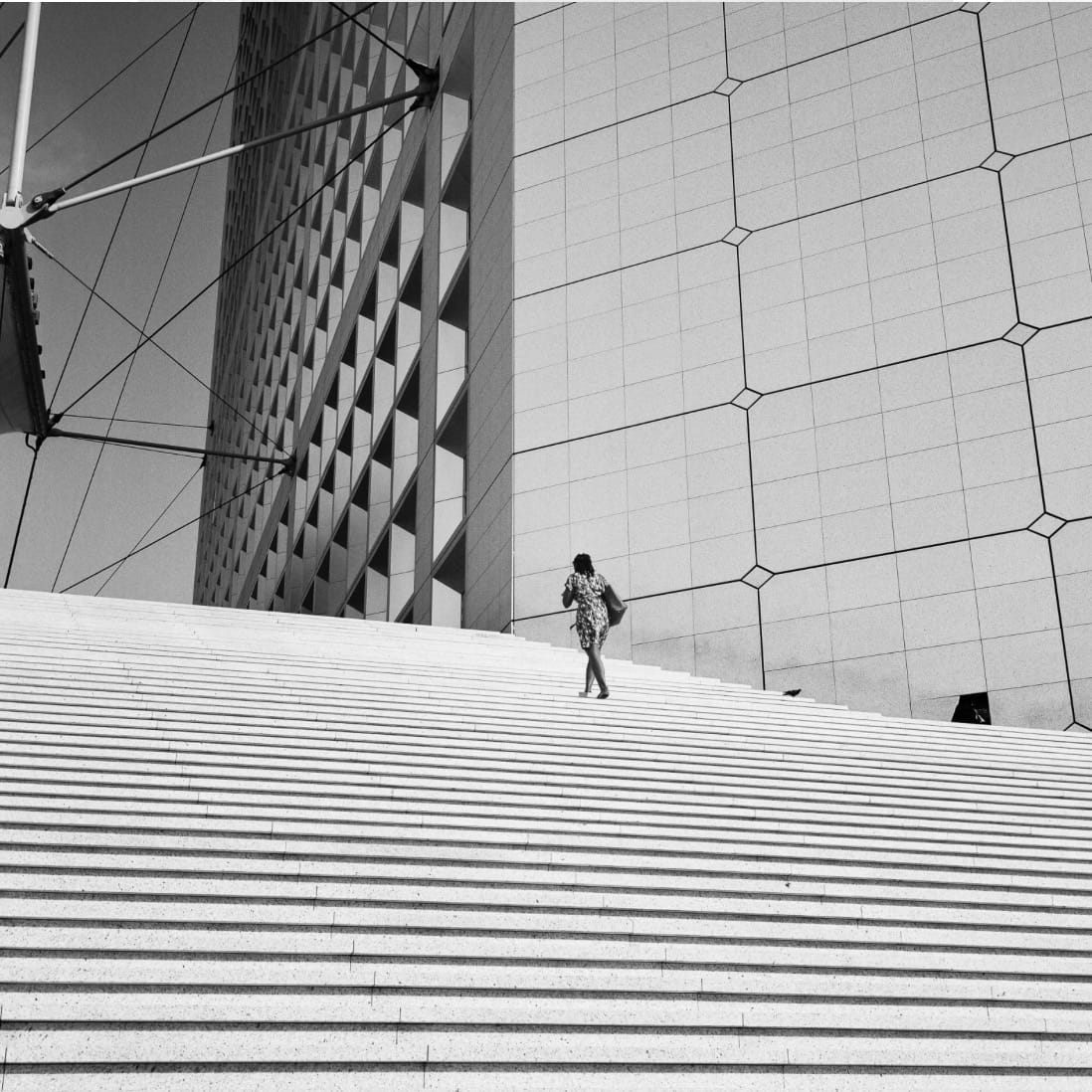 In contrast to these fierce depictions of struggle, Claire Maen’s Up presents a quieter moment of resistance. In this striking black-and-white image, a female figure ascends a flight of concrete steps. The curves of her body are the only soft, non-linear elements against the harsh, industrial geometry of the urban landscape. Her posture exudes both resilience and vulnerability, as if she is caught in a delicate balance between submission to the weight of the environment and the quiet determination to overcome it.