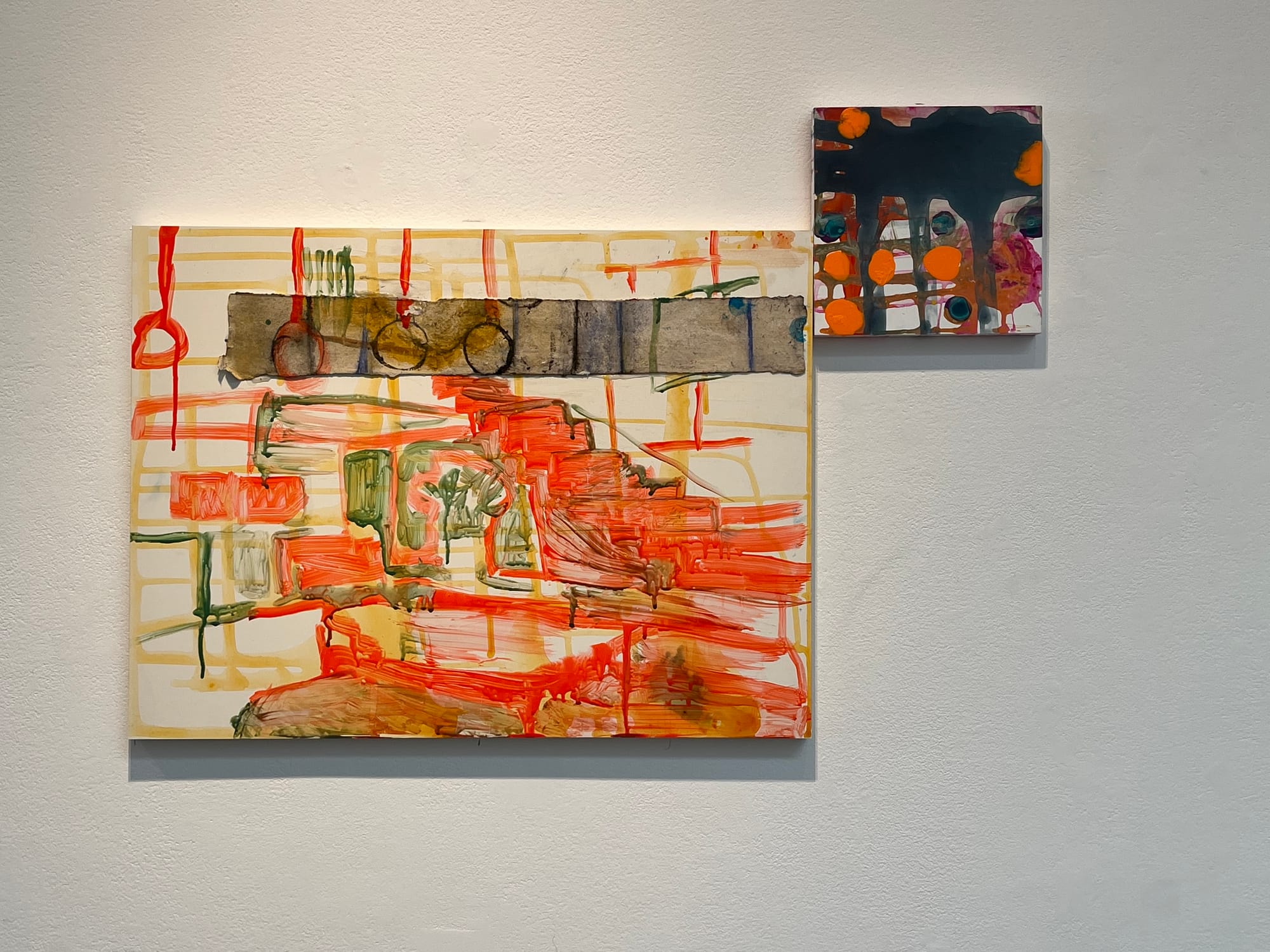 During her talk, Rosenberg said that she makes her pieces on the floor, explaining that the title of the show is an inside family joke because her sister, Melissa, is the screenwriter for the “Twilight” franchise. Growing up in what she described as a ‘bohemian’ household, she states that “My siblings and I all have different realities.” Rosenberg said that during COVID she experienced medical issues that involved her memory so that the figurative and abstract became fused in her work. The pieces on display in her half of the gallery were weird, wonderful, and intriguingly idiosyncratic.