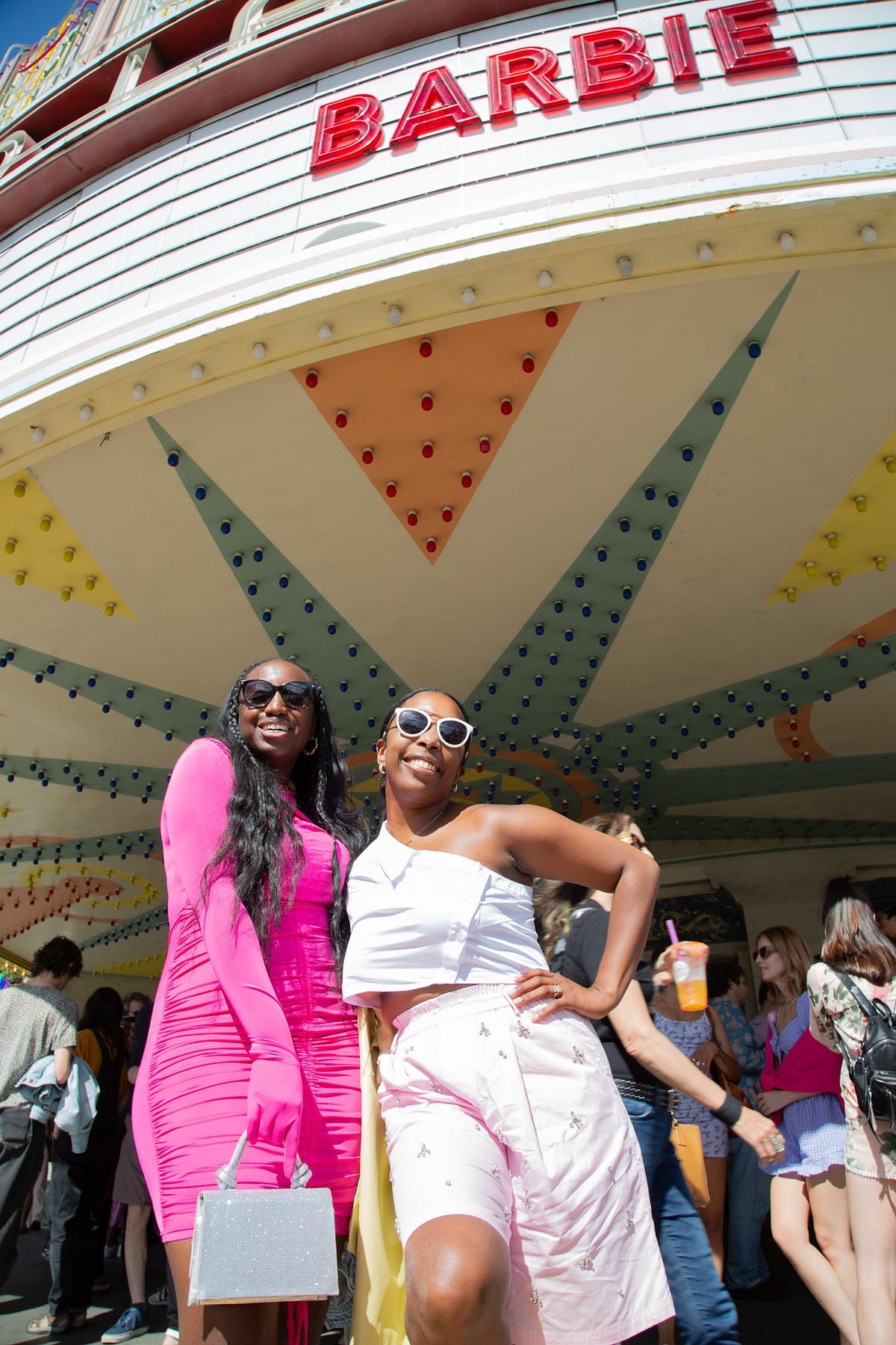The crowd was friendly and jovial, excited to be out at a theater and joining in a cultural moment. Deviating from Mattel’s mass-marketed images, many seemed to have created original looks with what they had, and had a grand time doing so.
