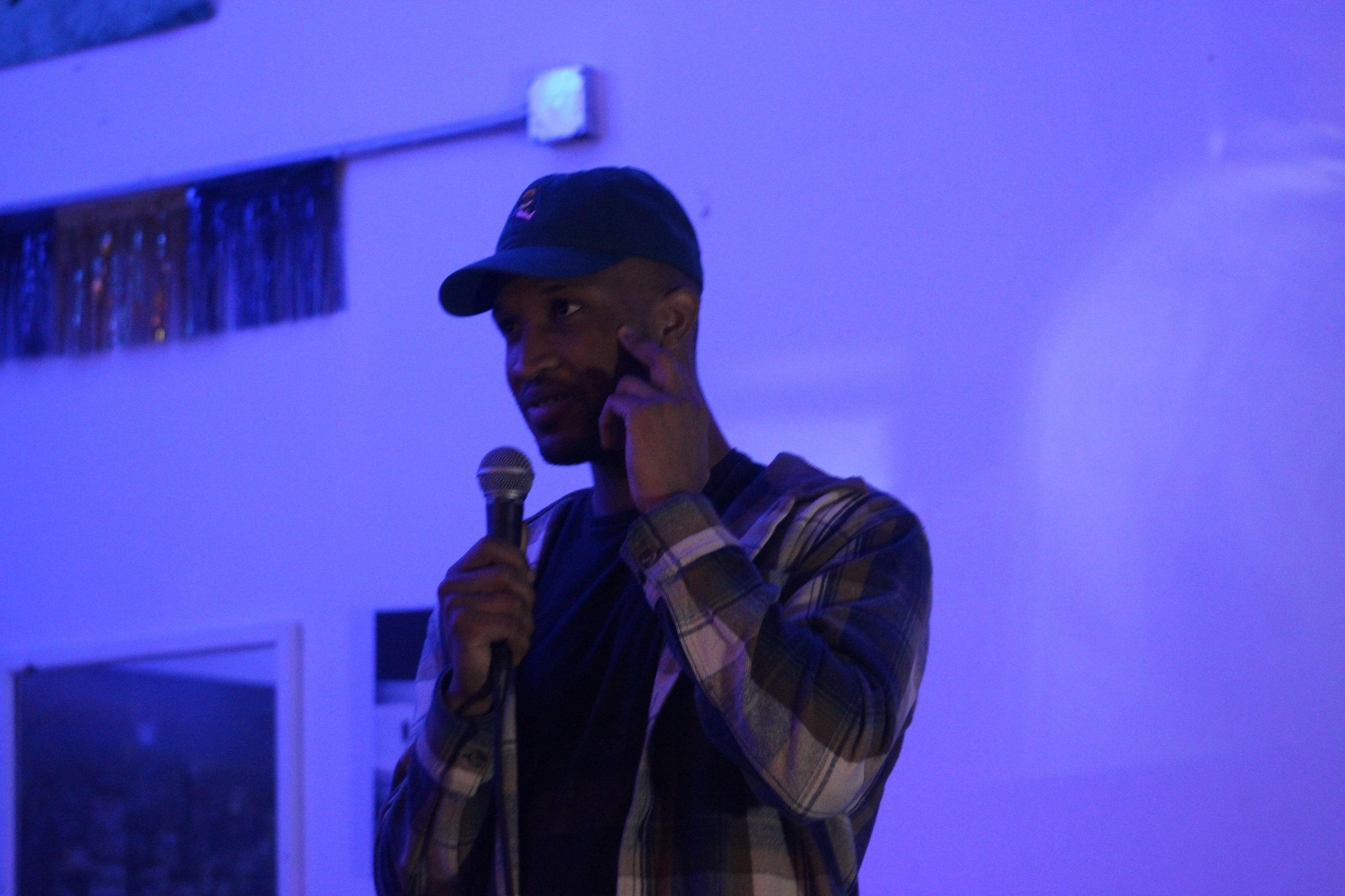 The evening started with a brief comedy routine from a young man named Ibrahim. His first joke was about growing up in eastern Africa: “People ask me if we chased animals and stuff like that. I mean yes, but I can’t tell them that!”