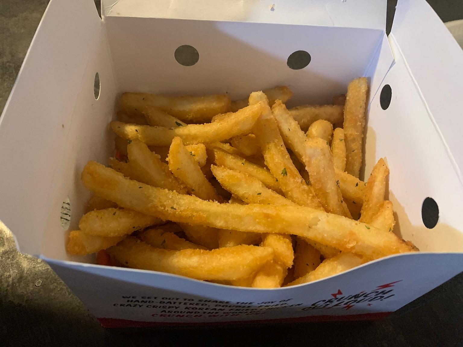 Even the French fries were outstanding. I love all forms of potatoes, but French fries are definitely my favorite. I was afraid that during the ride home, the French fries would cool off and lose some of their crunch and consistency. But whatever magic they worked on the chicken, they’d also done to the French fries. They were covered in garlic and other seasonings, and served as the perfect companion to the rest of the meal.