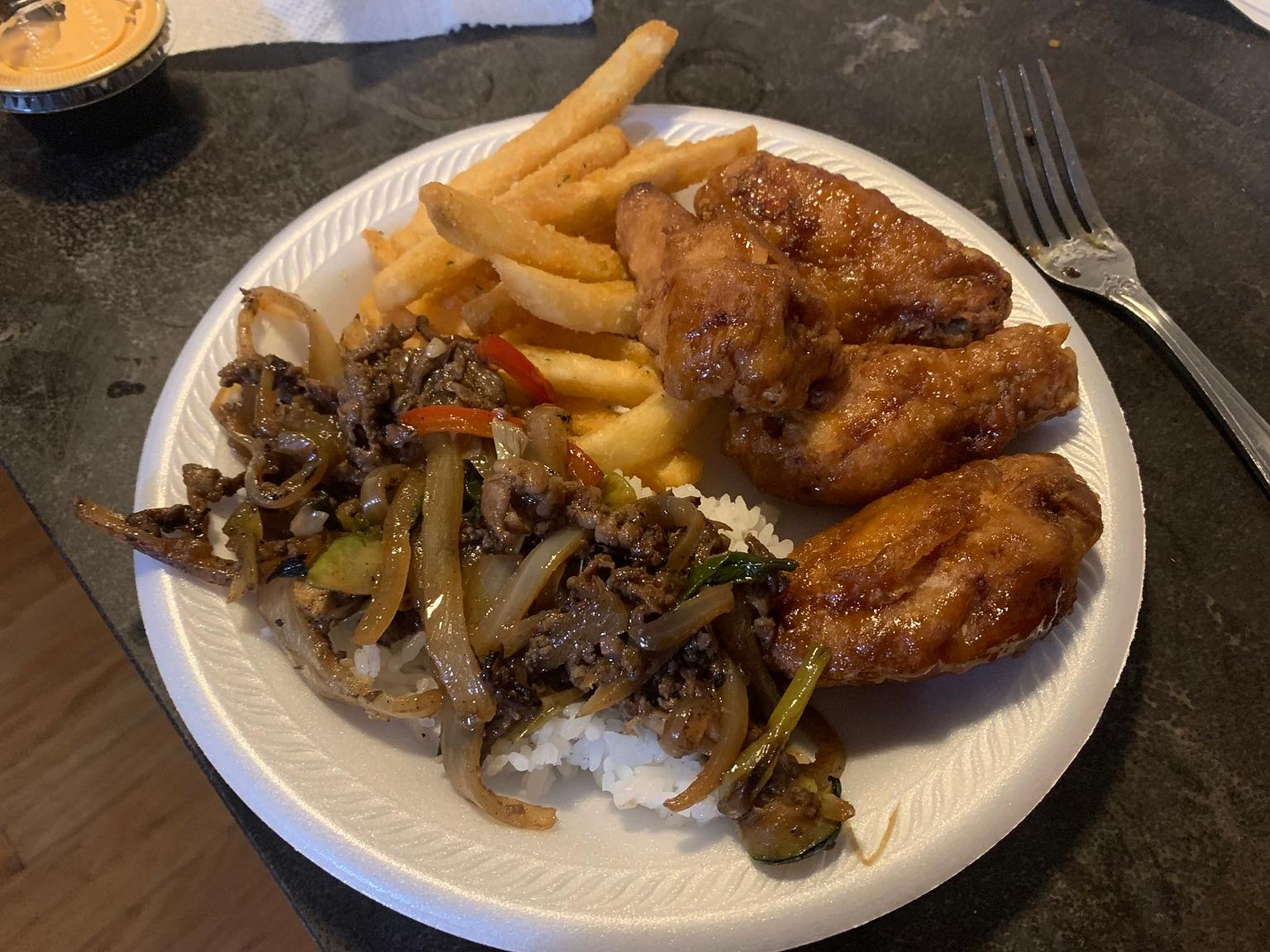 I ordered the soy garlic chicken wings, an order of bulgogi, and seasoned French fries. The car ride home was almost unbearable, as the food’s slightly sweet aroma filled the vehicle and beckoned me to take just one bite. But I resisted. I wanted to wait until I could properly pig out.