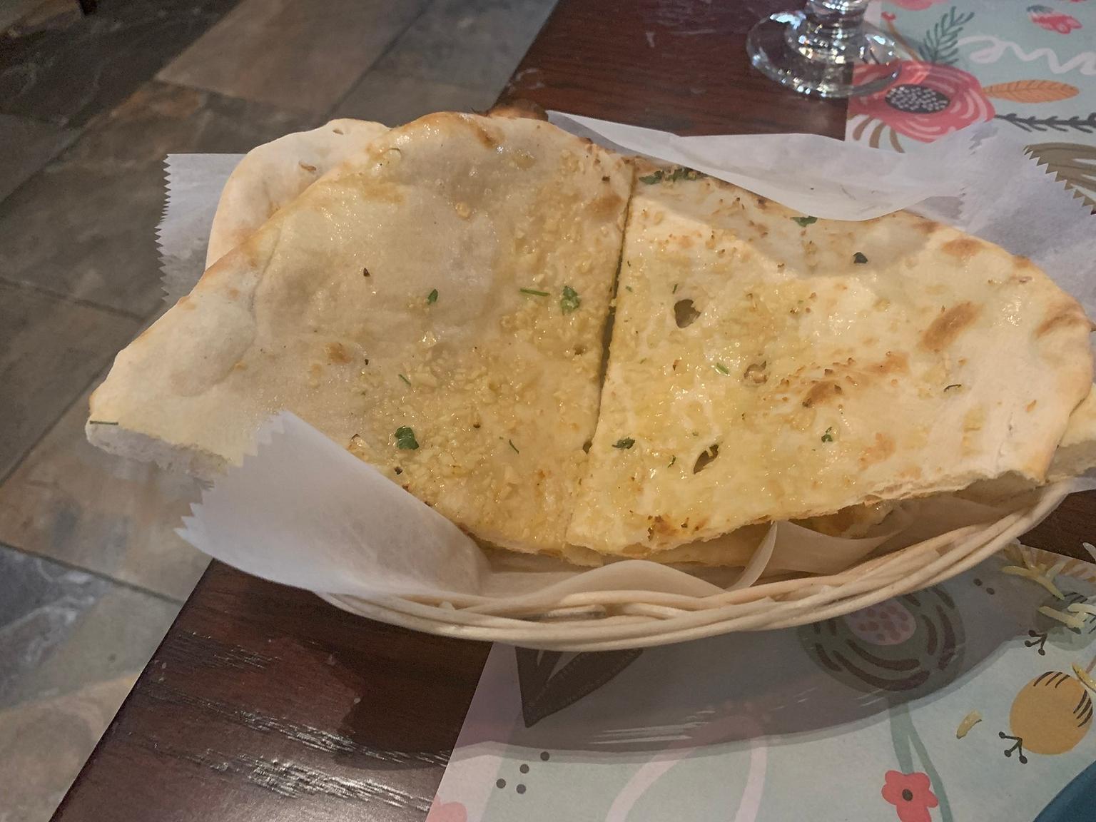 When the waitress brought out the garlic naan, I dropped my fork and dug straight into the basket of soft, warm bread.