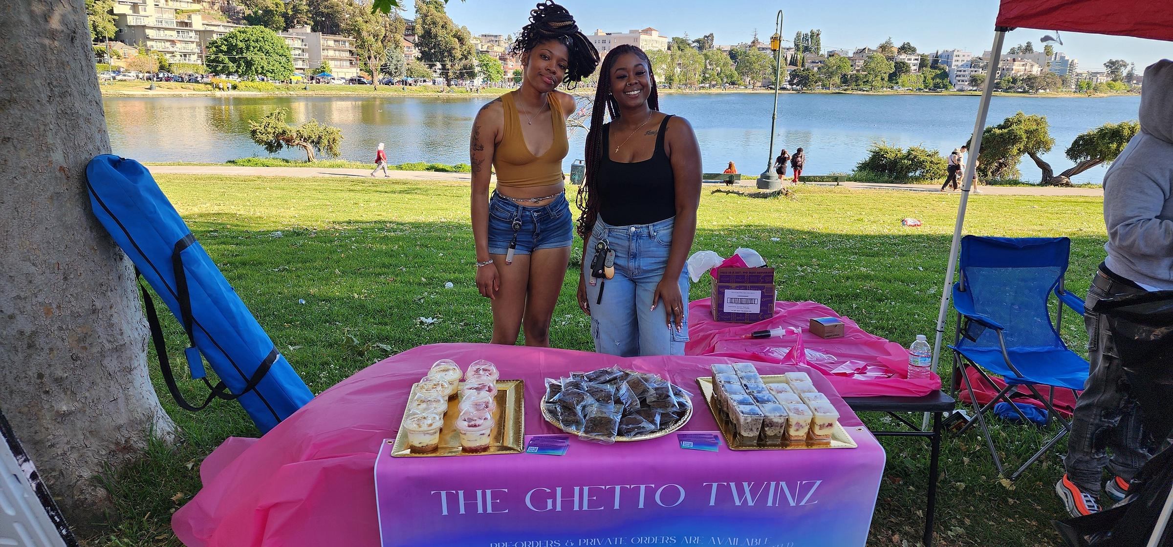 I tried the sweet treats of one of those small businesses, The Ghetto Twinz, who bake and cater desserts. The parfait, light and creamy, swirled in my mouth bursting with flavor and the brownie was ooey gooey good.