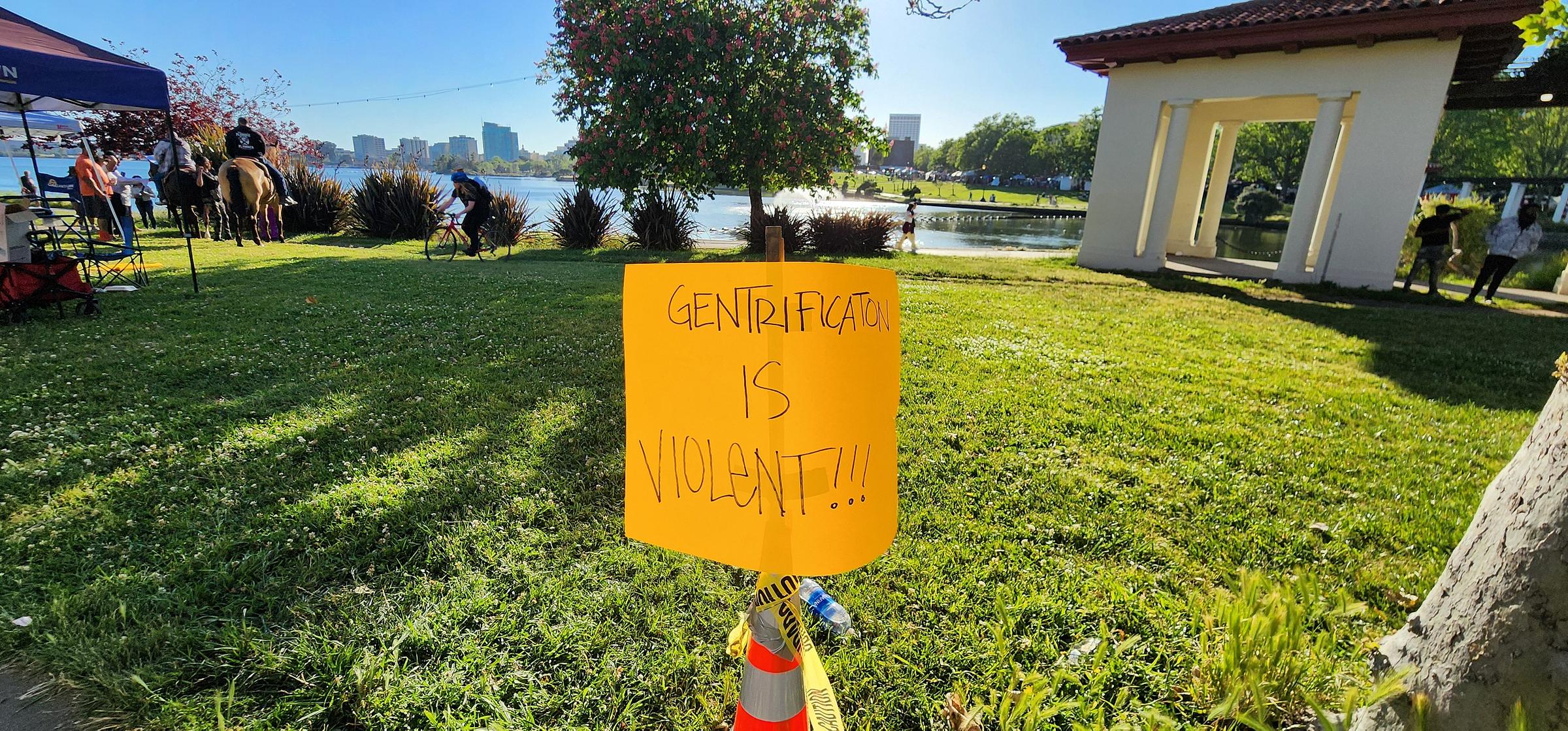 #WeStillHere is the tagline for 510 Day, and the folks who came out proved that Black Oakland is indeed still here and thriving. Earlier, Bee said that this is the point of the day: Showing up and doing what folks do daily is a political act in the face of gentrification. Ss signs posted around the event proclaimed, gentrification is violent to the people it displaces and the cultures it erases.