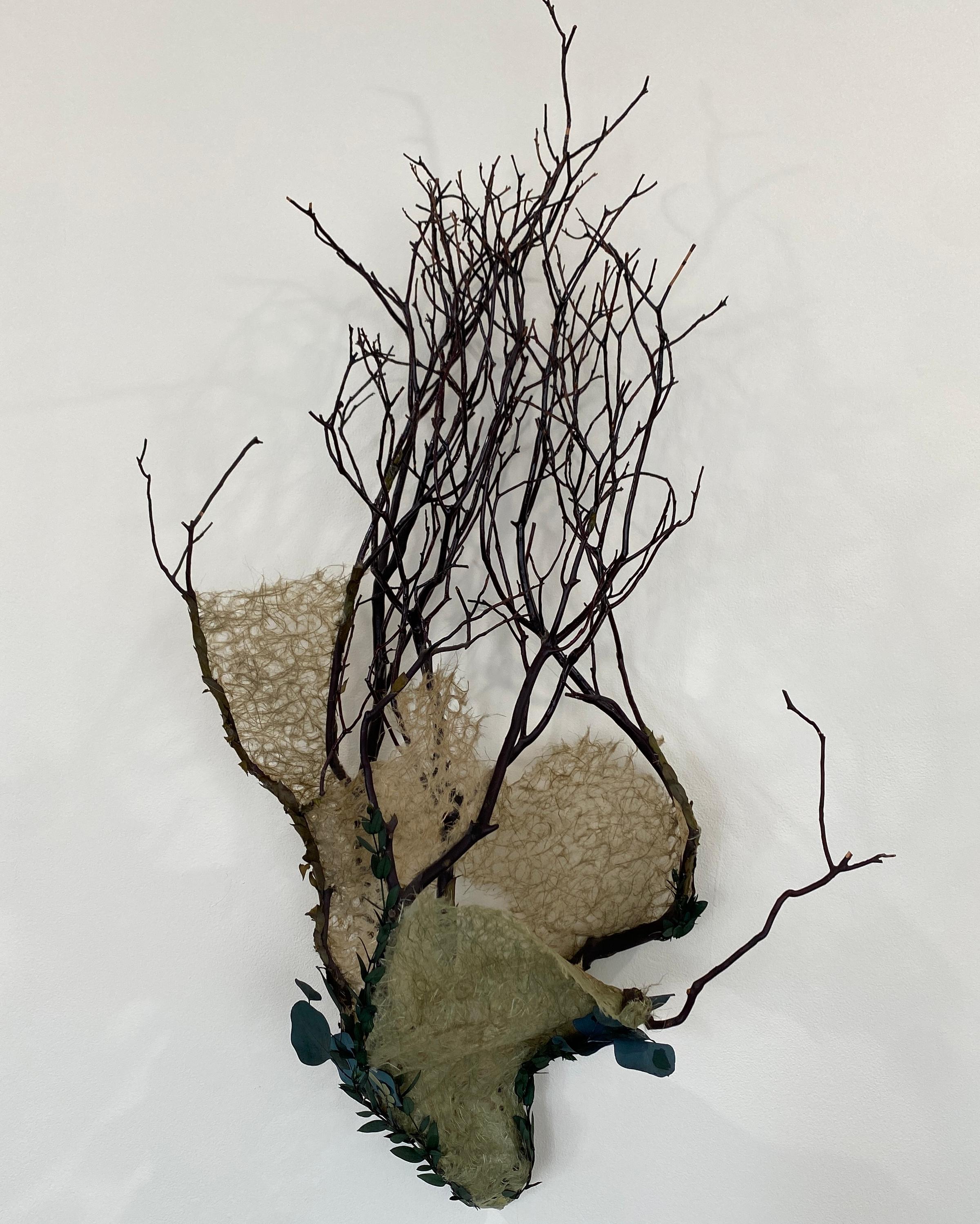 Among the sculptural works were those by Cynthia Brannvall which are constructed of manzanita branches and handmade Japanese paper. They’re exquisitely delicate-looking, their subtle depth and textures tempting one to touch them.
