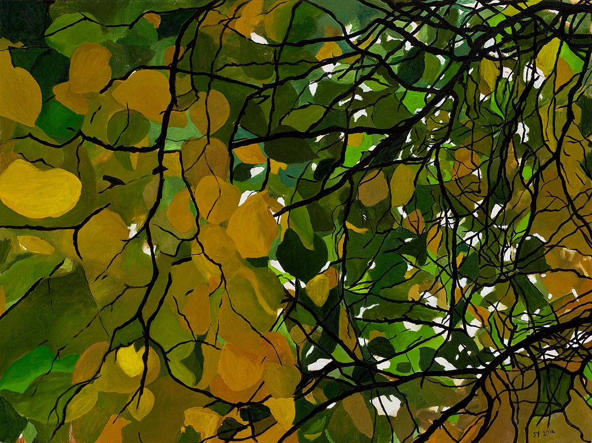 It was in this spirit that I approached “Among the Trees,” a group show at Gray Loft Gallery. I certainly didn’t expect Ross-esque paintings, and the works on exhibit are definitely not “happy little trees.” But I couldn’t help but think of Bob Ross for a group exhibition by 20 Bay Area artists composed of works thematically united by trees. This is a decidedly more sophisticated forest than those broadcast on PBS years ago.
