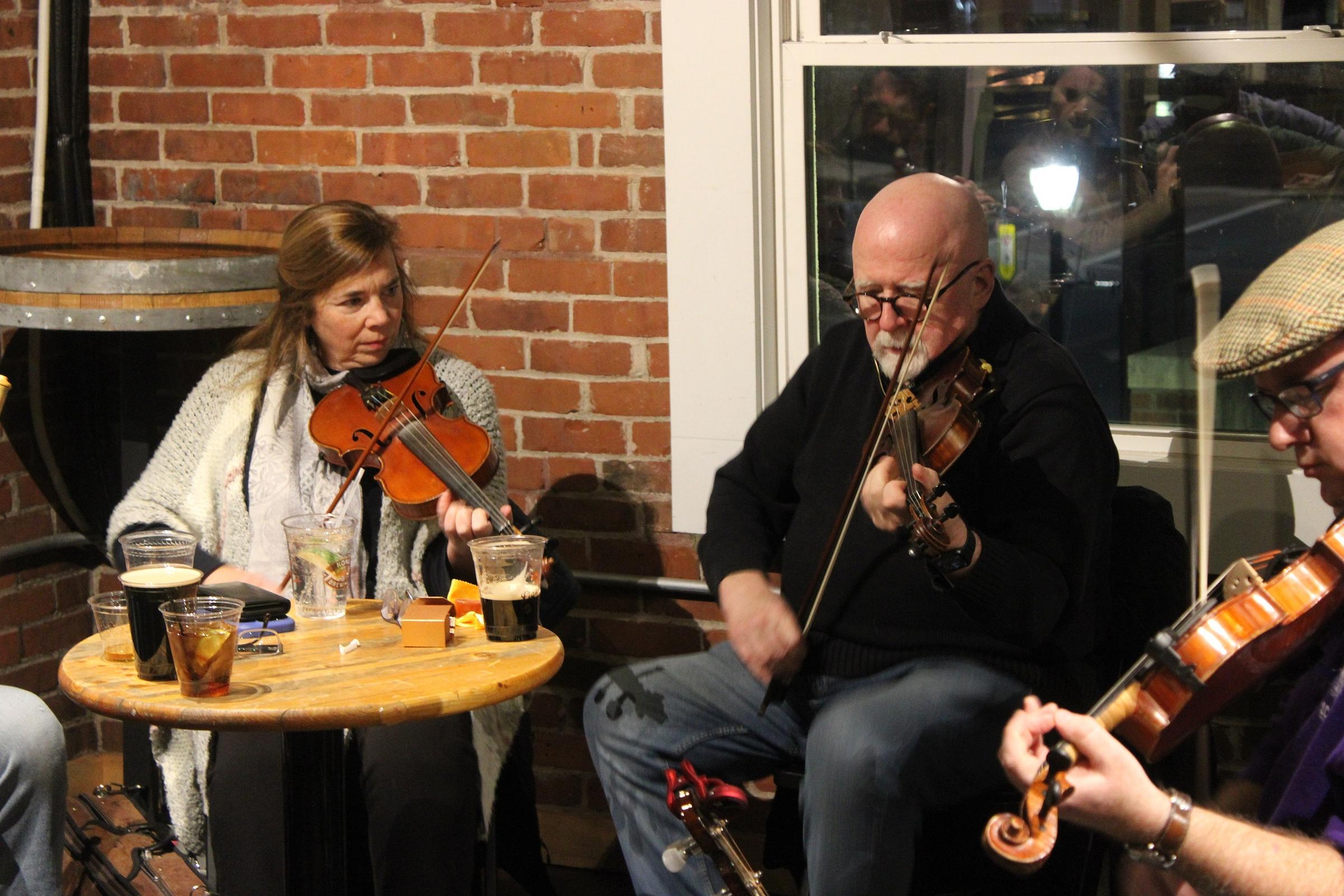 The musicians were relaxed but professional. New musicians trickled in throughout the evening, and before long there were 20 people playing a variety of guitars, Irish pipes and flutes, fiddles, banjos, mandolins, and even a keyboard.