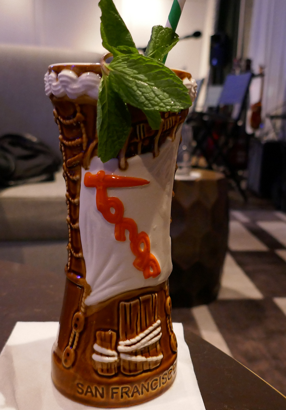 I blame the drink. Now, the history of tiki bars in the U.S. is both legendary and problematic, but I admit that I’ve spent much of my American adulthood partaking in the pop culture phenomenon of mid-century revivalist escapism through the imbibing of tropical drinks amid island-themed paraphernalia. That is to say, I love drinking strong, fruit-based cocktails with tropical umbrellas in them, imagining I’m on a beach far away from my daily routine here in the Bay Area, where I engage in the daily commute on the struggle bus of living and working as a sometime writer. I don’t think you can blame me if I just want to get away, even if I don’t actually go anywhere. And since the Tonga Room, the legendary tropical-themed bar at the Fairmont Hotel in San Francisco, was doing a “Tonga in the Hills” event at the Claremont, I was game for another escape.