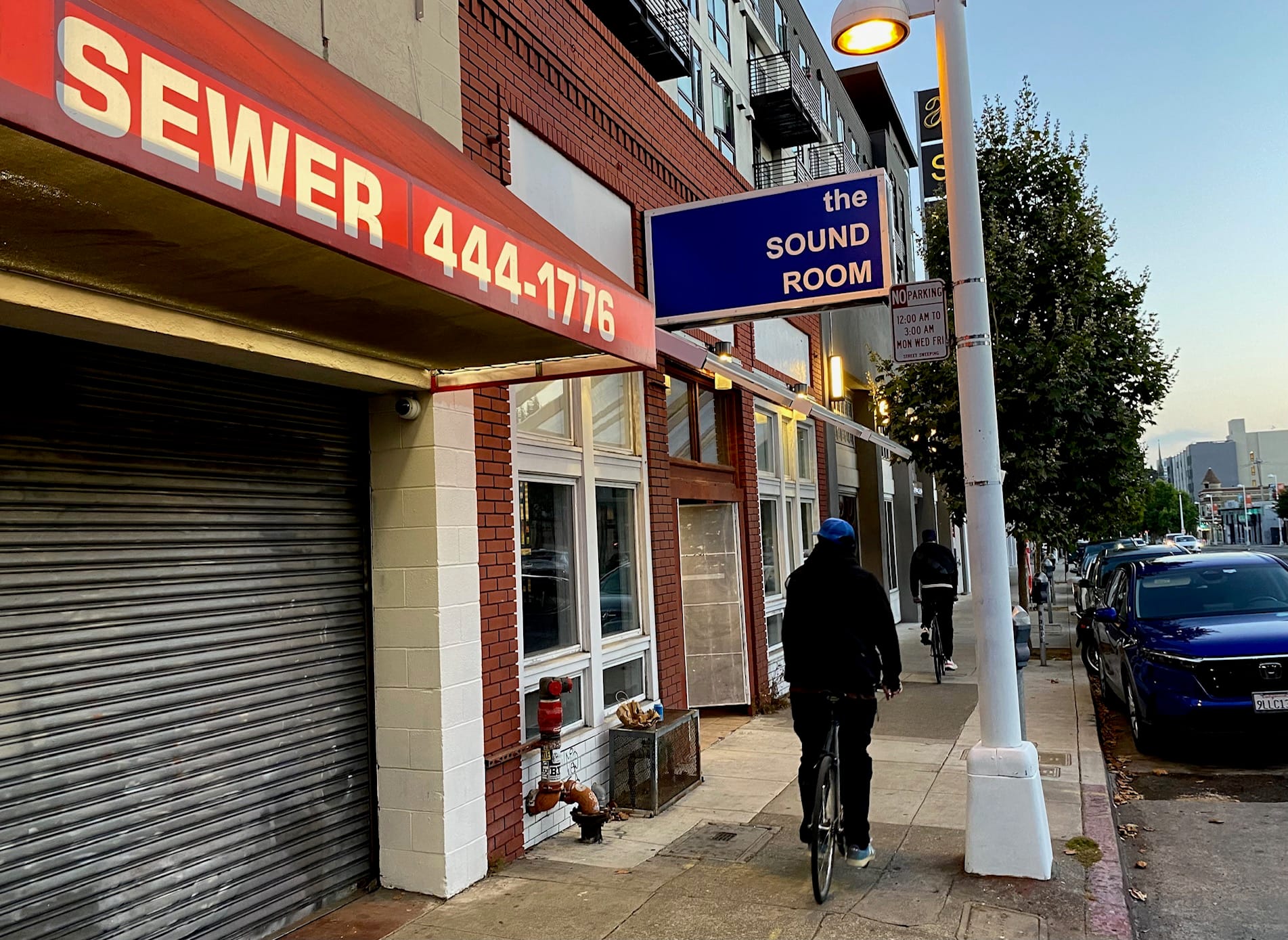 They say the neon lights are bright on Broadway, but not in this particular part of town. Located in a neighborhood otherwise devoid of nightlife, many Oaklanders don’t even know that The Sound Room exists.