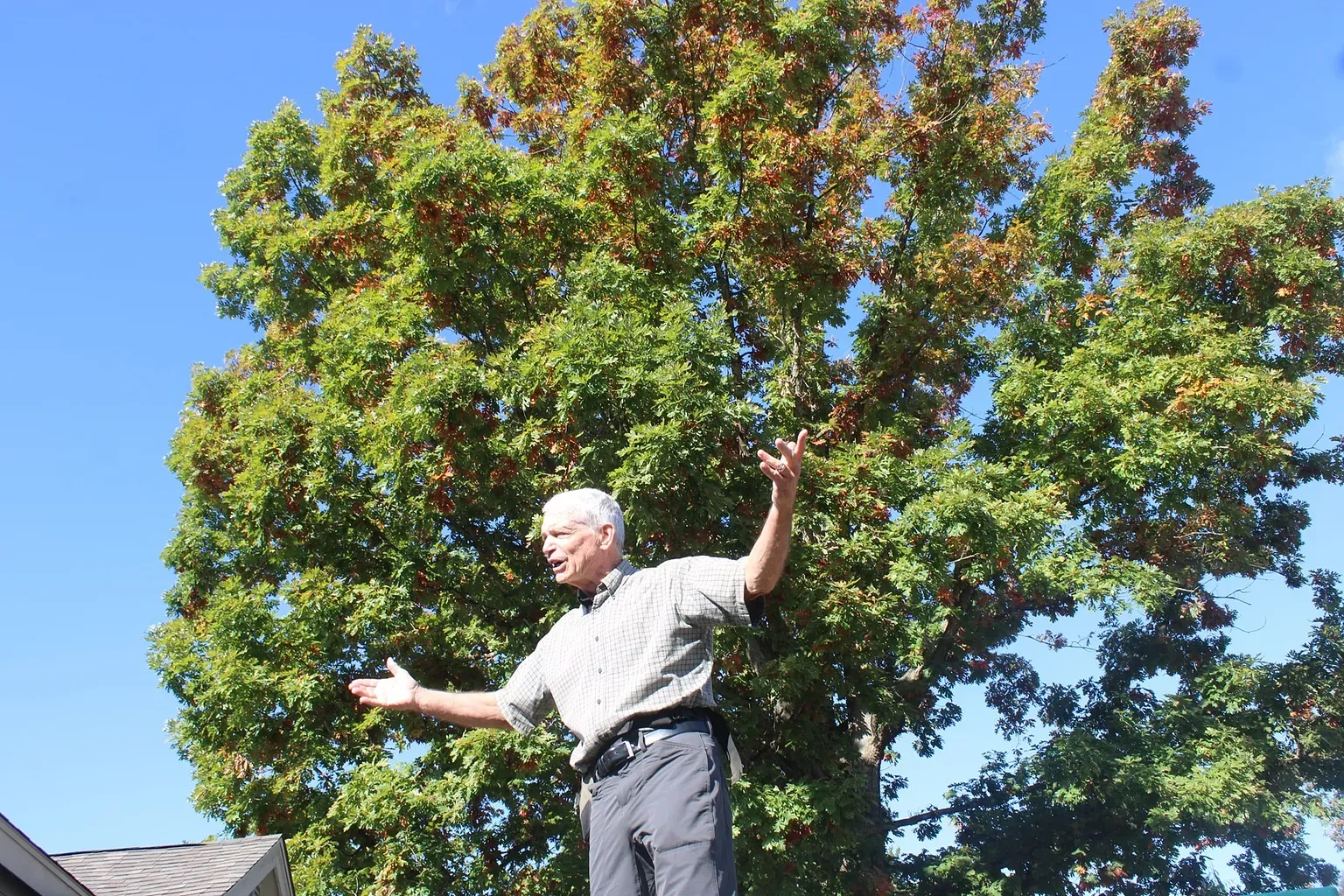 There’s a difference between non-native plants and invasive species. John explained that an invasive species is one that replaces native plants by outperforming them, making them a threat to the native species’ existence. One such example is the Norway maple, brought over from Europe for its aesthetic appeal. It produces the telltale “helicopter” seeds that spiral down to the earth at this time of year.