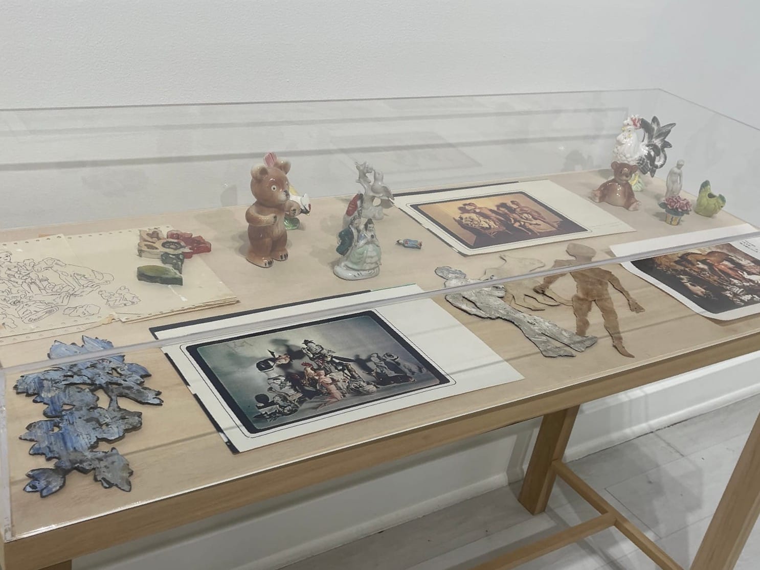 In addition to her ceramics and paintings was a display case containing an assortment of tchotchkes, trinkets, and figurines Frey had collected as inspirations for—and sometimes elements in—the work she created in her decades-long career.