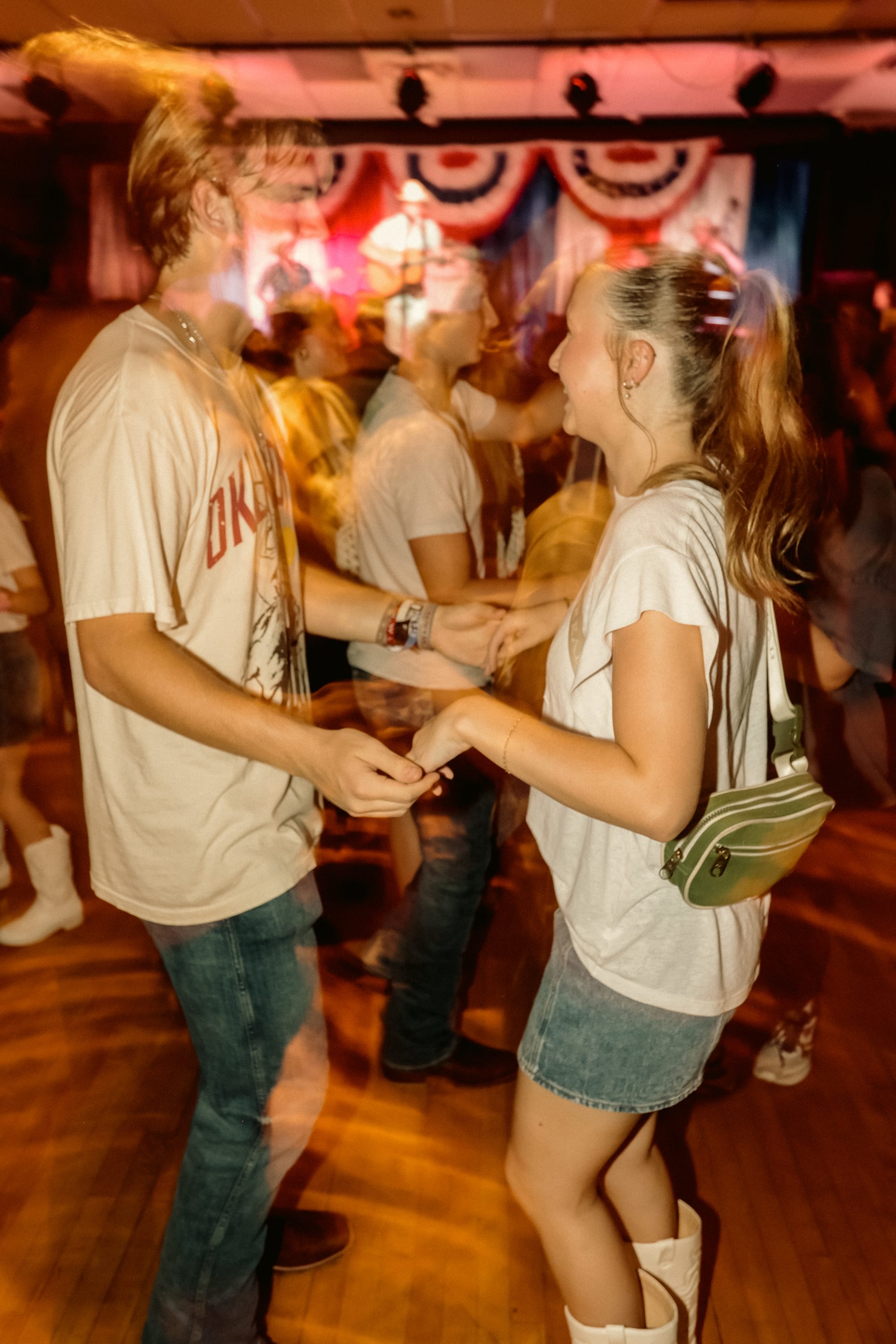 From the moment we walked in, it was apparent this night would be different, and incredibly “Tulsa.” The dance floor was full—every inch of hardwood covered with boots, sneakers, and heels shuffling in time, with the overflow bleeding onto the surrounding tile. The crowd was a wide swing on the demographic wheel: teenagers to old-timers, dapper fits to just-got-off-the-Fortnite-server casual. The ethnic background was just as diverse, with far more melanin than the previous evening. There was a tall cowboy in a sleeveless shirt that read, “Trans people existing does nothing negative to your life, you crybaby bitch.” Well … that was my friend Wade, but no one in the diverse crowd batted an eye.