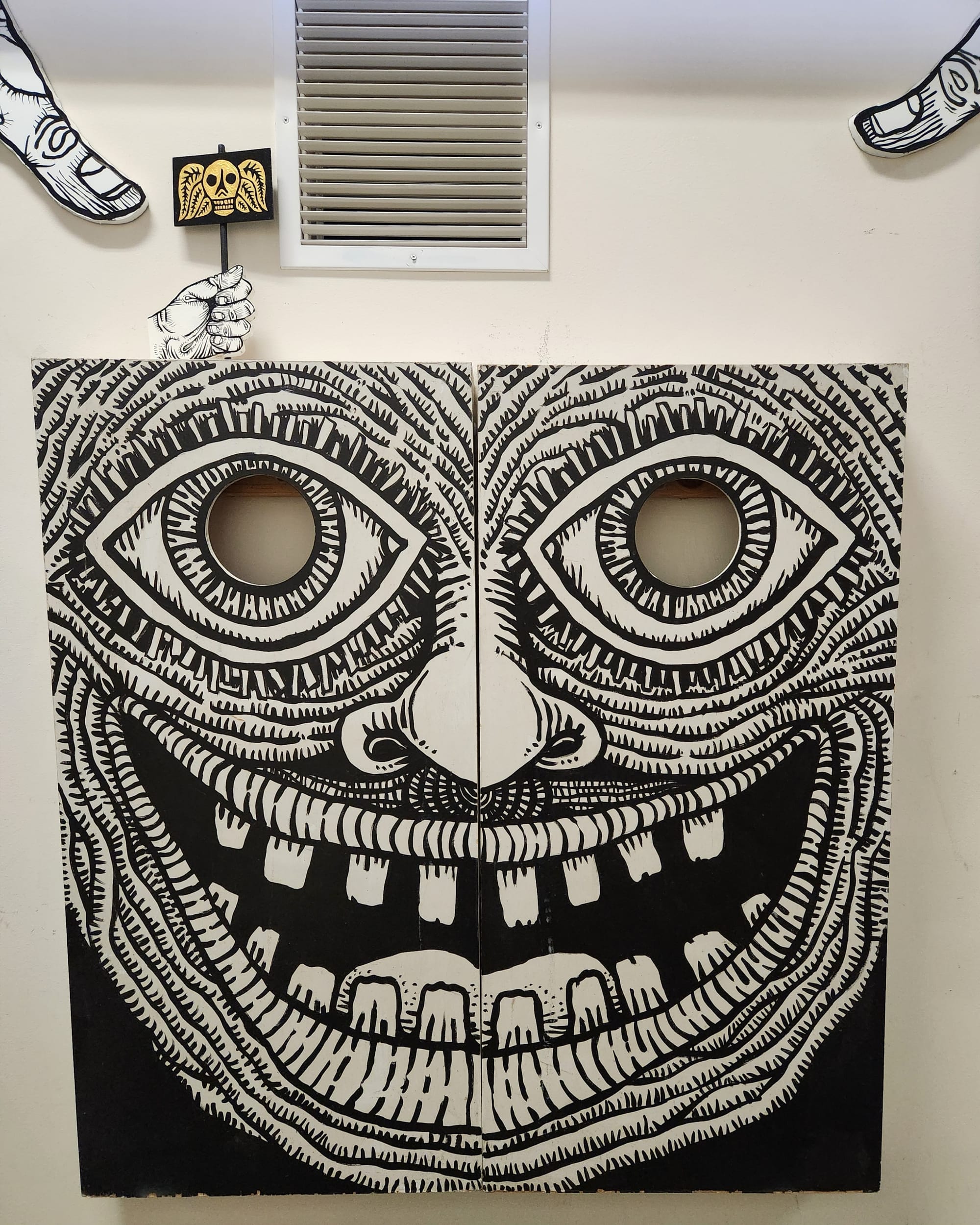 If you live in the Bay Area you’ve likely seen something by John Casey’s hand around town, his playful but haunting eyes and disfigured critters, born of his life-long “obsession with the figure….show not only the distorted perceptions of a child…fascination with skulls, teeth, spirographic eyes, and invented body parts.” The warped and worrying creatures are dementedly loveable and darling. A chubby raccoon clutching a can of Schlitz beer (“Precious”, 2019, below) stares, red-rimmed eyes sparkling sweetly.