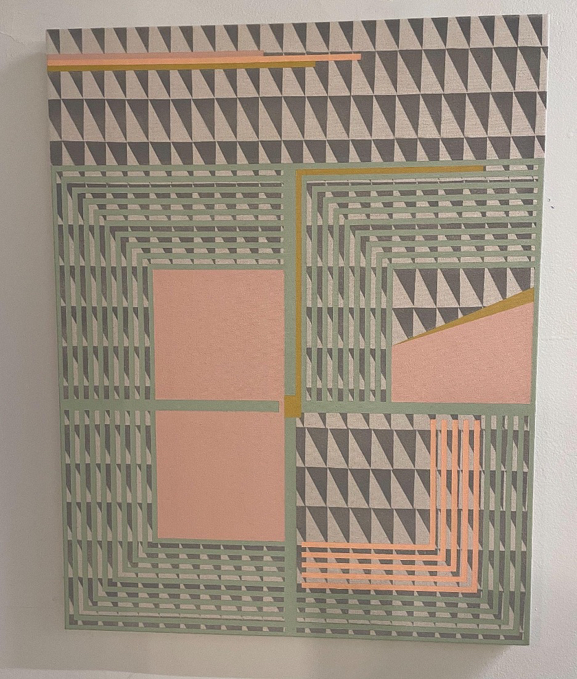 Then there are pieces that aren’t quilts at all, at least in the literal sense, and instead used acrylics on canvas to capture the spirit of a quilt. I wish I had the space to share a photograph of every piece in Elephant Gallery, but you’ll just have to make a trip there yourself before the end of January. The vibrant and progressive collection of pieces left me mulling the very basic question — art-schooly yet important — of what a quilt was in the first place.