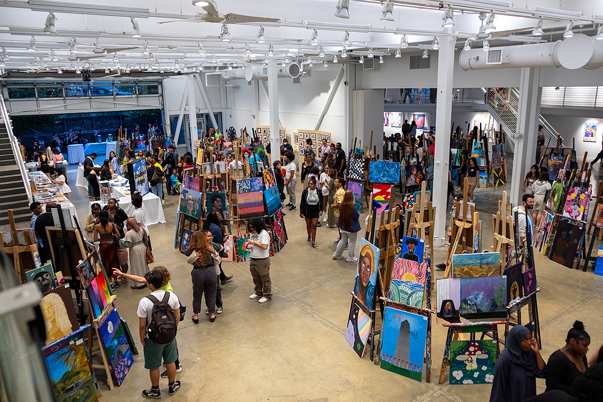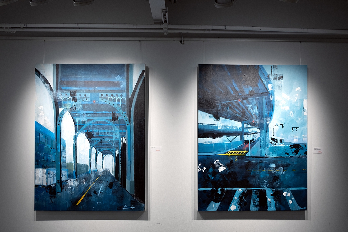 Teen artist Ashanti Dejesus’s paintings hung on the wall at the Artists For Humanity’s Big Summa’ Show — two moody-blue paintings of underpasses, their details sponged away to abstraction but their rainy tone familiar to any city dweller. Next to both, little cards on the wall marked their price as $1,600 each and, beneath that, hand-scrawled, all-caps notes that read “SOLD.”