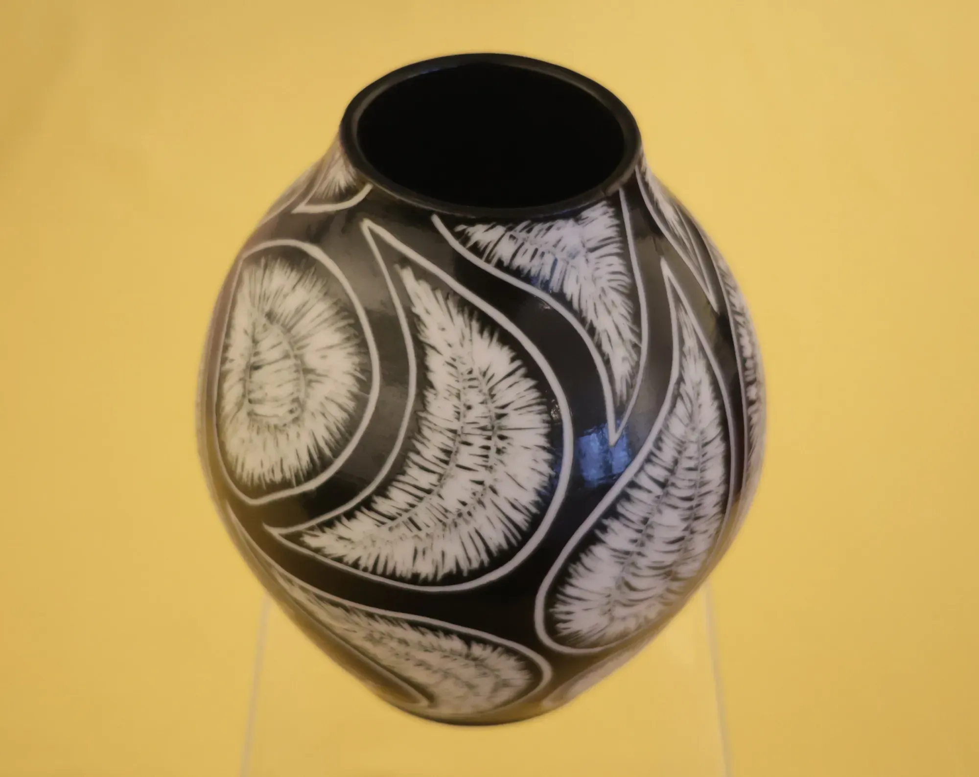A few of the artists use working small as an opportunity to show how exquisite a palm-sized piece can be. Niko Scharer’s Evolution shows off its refinement and attention to proportion and detail. Susan Clinard’s Lean In is a tiny study in how big compassion and empathy can be. It features two figures, one curled up in a position of hurt, the other a solid wall ready to protect. Meg Bloom’s At Sea shows that the artist — who features in regular rotation at City Gallery — can create the same ingenious, gravity-defying pieces at a smaller scale than she usually exhibits.