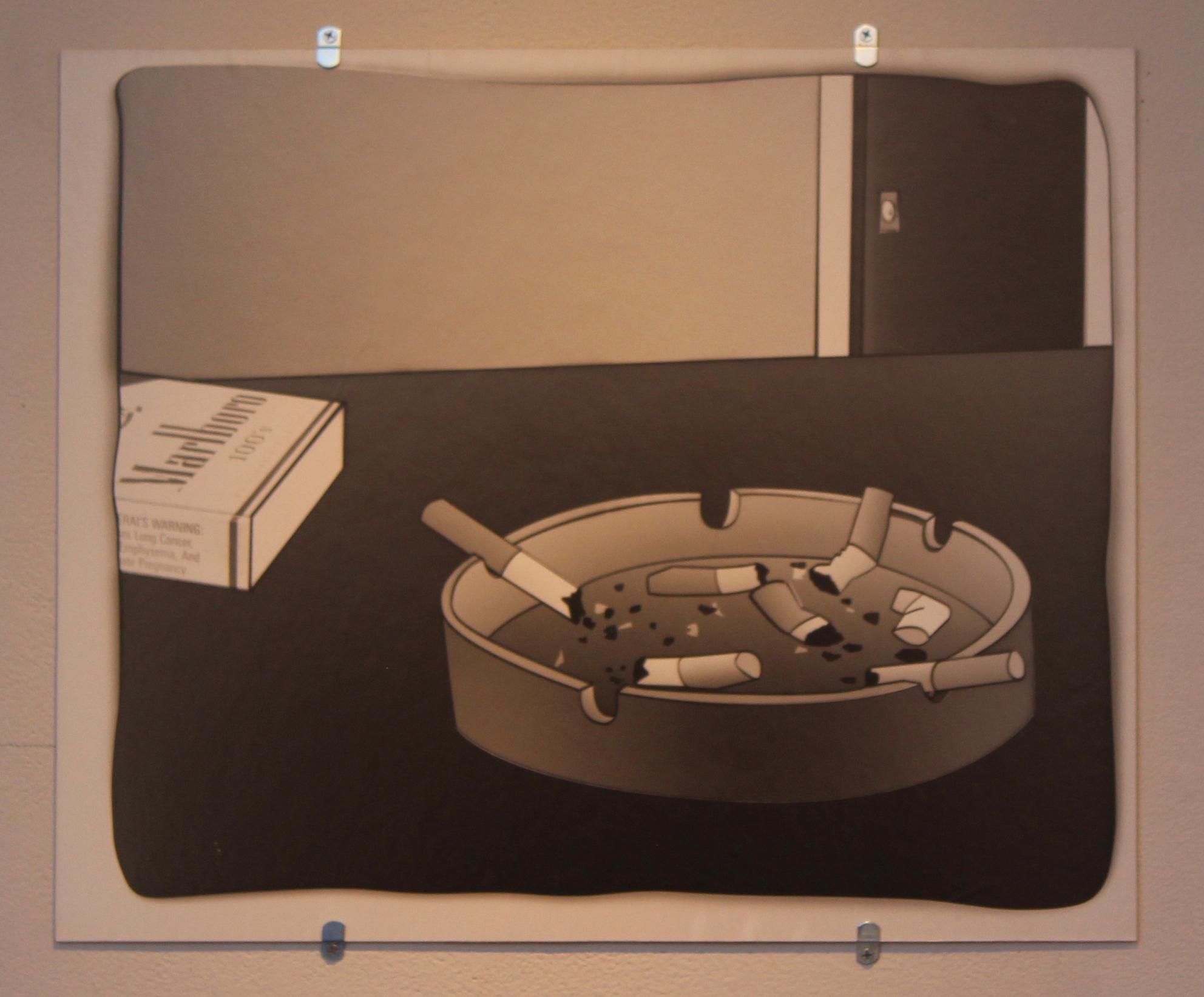 Among those snapshots are a series of simple, evocative images from Pat Garcia. The black-and-white tone and the illustration style, partaking of an old cartoon, make it tempting to imagine them as being memories from the past, or even imagined memories from a previous generation, when ashtrays and phones with cords were ubiquitous in people’s homes. Reaching into the past for these small but important changes comprises a statement about personal origin, and the distance traveled to get to the present.