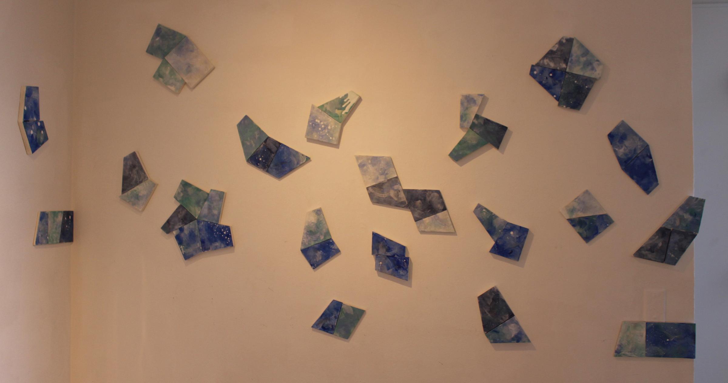 The context of the exhibition offers a fresh angle of approach on Esthea Kim’s work, which has been appearing at shows around town lately. It’s easy to layer labels like “gauzy” and “ethereal” onto Kim’s pieces, but doing so doesn’t give enough credit to the difficulty of the technique on display to create those effects, and the resultant toughness underneath the exterior beauty. The fragments she puts on the wall bring that toughness to the fore. If this is a show about constructing worlds from memories and visions, Kim’s piece comments on the difficulty of that. The contents of each fragment are unknowable, unreadable, and their jagged edges suggest that if you hold them too close, they’ll cut you.