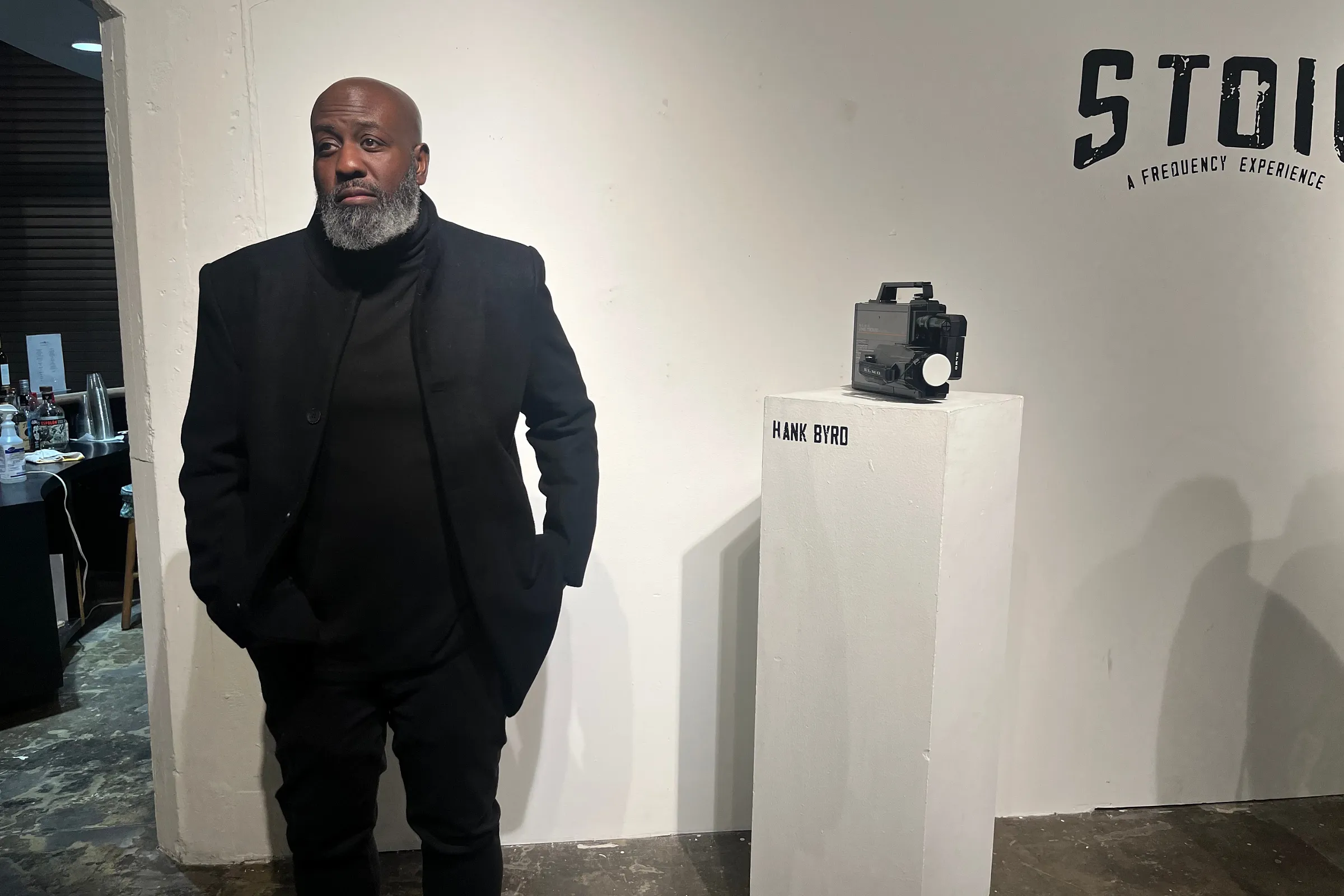 The film — shot in black and white in a roundtable format, and projected onto a tall white block — served as an introduction to the event’s speakers: photographer Christopher Creese, emcee Mr. Wortham, filmmaker Hank Byrd, and poet Kode Ransom.