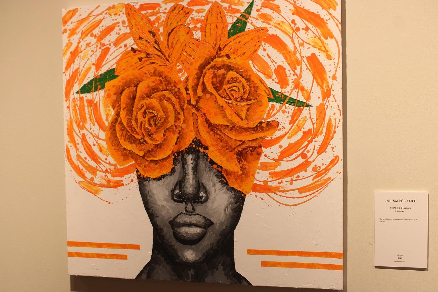 Jaii Marc Renee’s Naranja Blossom was the first piece that caught my eye. The position of the orange flowers over the eyes of the person evokes both a sense of beauty and horror simultaneously. The idea of flowers overtaking a person’s face is reminiscent of the clickers from the videogame and HBO series The Last Of Us, where a virulent fungus has taken over the human body and replaced most of the victim’s face. While Renee’s artwork is far more visually appealing than the horribly scarred appearance of clickers, there is still something fearsome about the human body being made subservient to plant life.