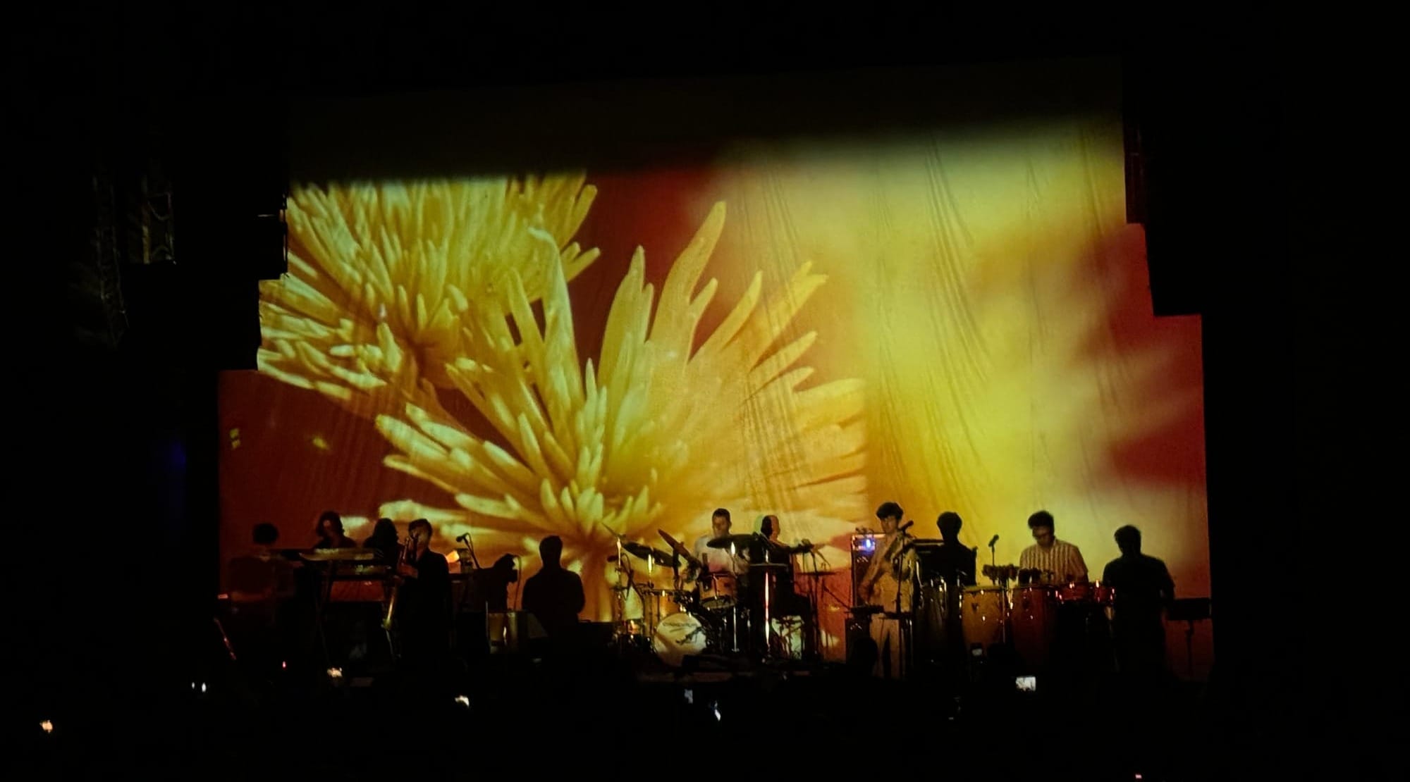 This was, by far, one of the darkest and psychedelic shows I’ve ever seen. Literally -- the theatre was dark and hot and sweaty. A projectionist used three projectors to create a flower-centric, visual acid trip of spinning, overlapping graphics that washed over BADBADNOTGOOD’s faces and instruments, making me feel like I was transported somewhere in the late 1960s.