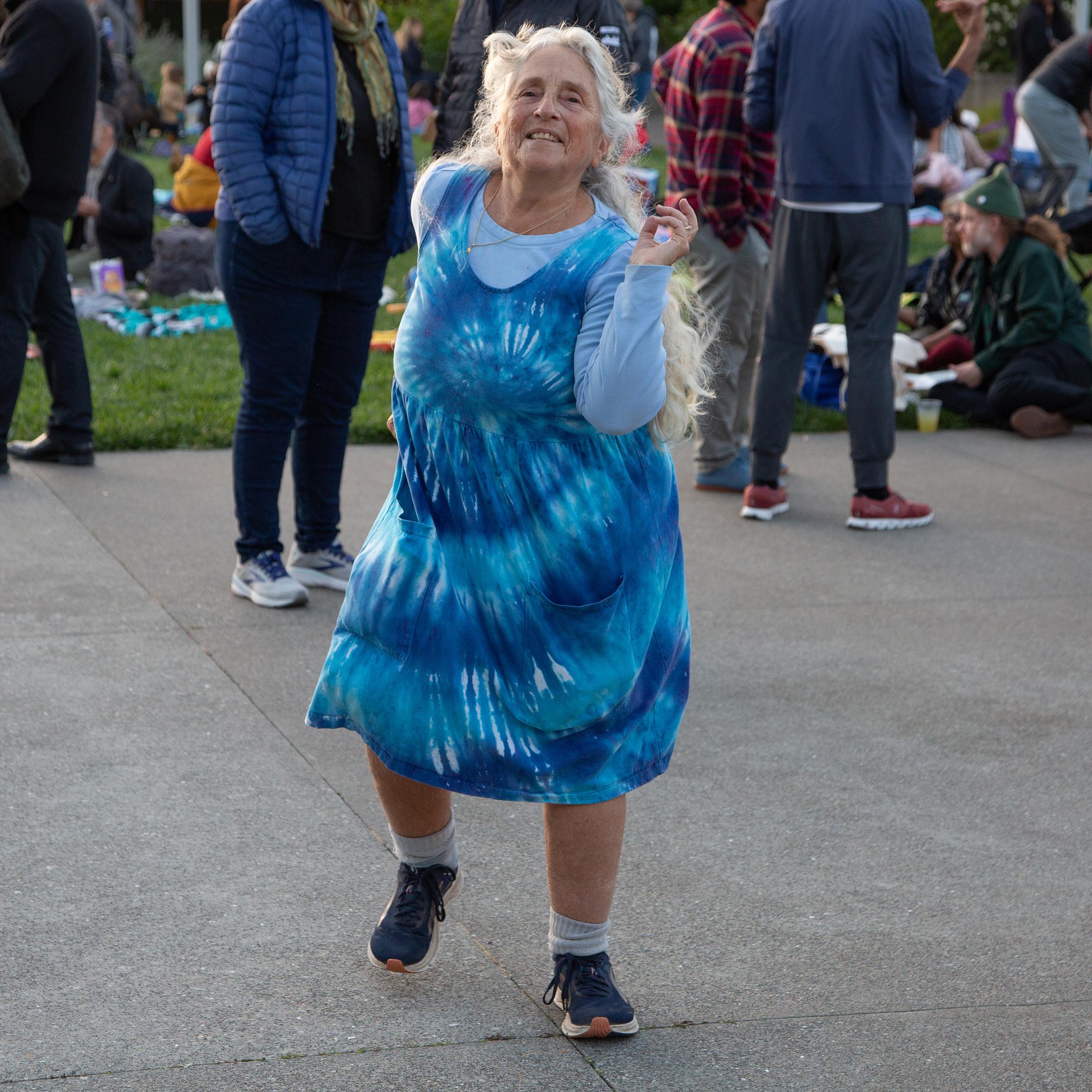 I found people to be engrossed in the moment, lost in the music, and dancing their little, or not so little, hearts out. For example, meet Susan, in town from a couple hours north to visit her daughter and granddaughter — but really here to dance. And yes, don’t worry, I have already texted her these photos by the time you read this.