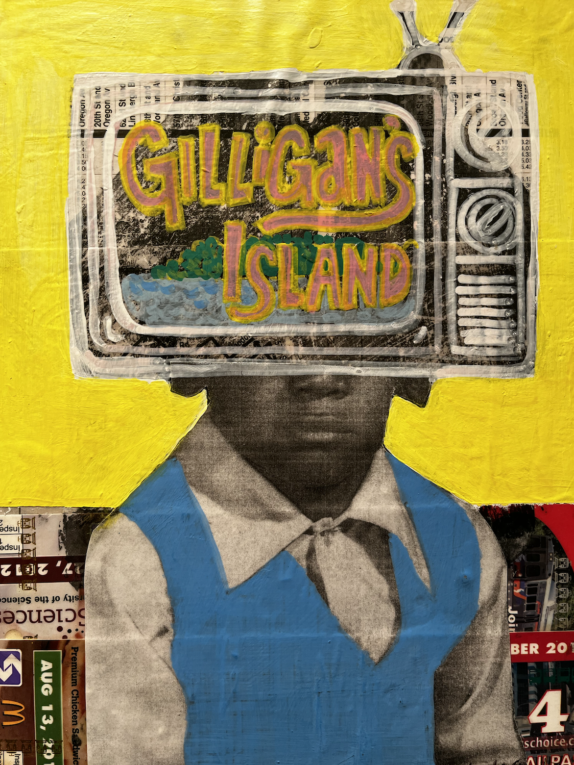 Through autobiographical collages of old photos, train tickets, television sets, vintage advertisements and big brand snack foods, Everett recounts the texture of his past through the open eyes of childhood. The exhibit’s other artworks deal largely with the erasure of memory through highly conceptual pieces — like photographs of subjects with their eyes removed or landscapes poking out from a quicksand canvas of asphalt. By contrast, Everett uses the youthful technique of organized patchwork to celebrate the sustaining power of recall and reflection.