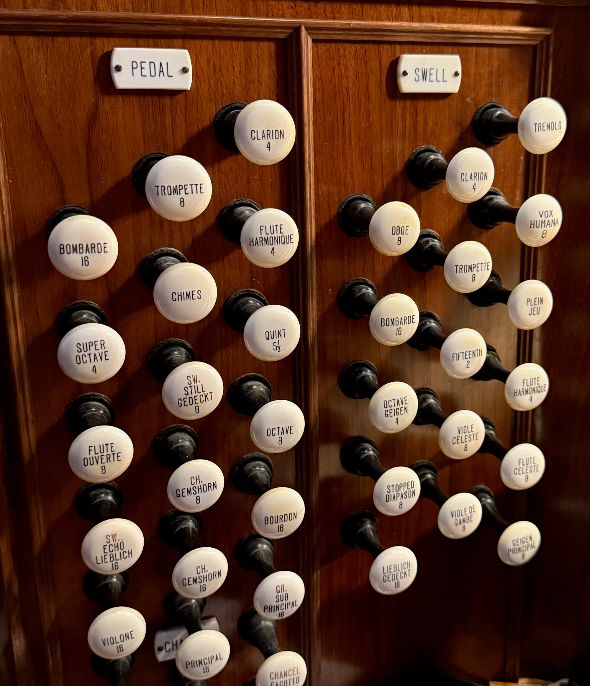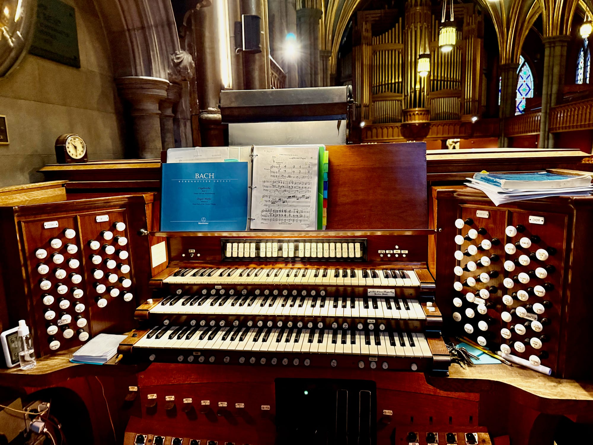 On this weekday morning, Johnson was alone in the sanctuary as she summoned Bach’s Prelude in E flat major. (Click on the above video to watch her perform.) She reached for pre-synthesizer-era buttons that summoned trumpet or string or oboe facsimiles to add grandeur and texture to the melody, substituting some stops for others that no longer work. She covered for dead notes like the G below middle C. She knew which keys would stick and play continuously in the background.