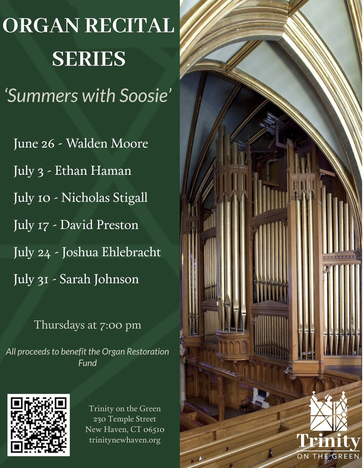Seated behind three rows of keys and columns of buttons, Sarah Johnson pulled out all the stops she could to bathe the sanctum of Trinity Church on the Green in a timeless ethereal whirl of baroque music.