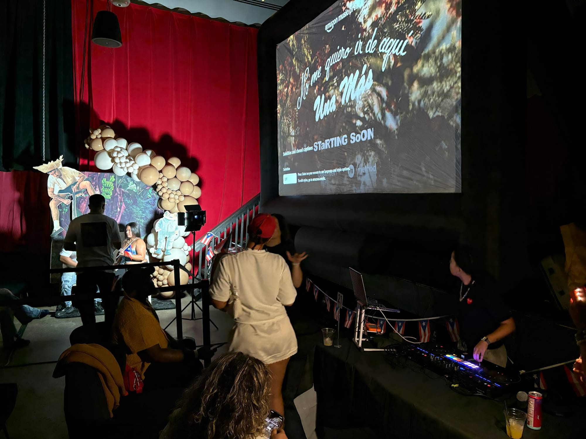 Leading up to the start of the concert, the DJ played reggaeton hits like “Muñekita” by El Alfa, JT, and Kali Uchis, attendees grabbed drinks off the themed menu (one virgin Acho PR, please), and couples took photos together in front the photo op backdrops.
