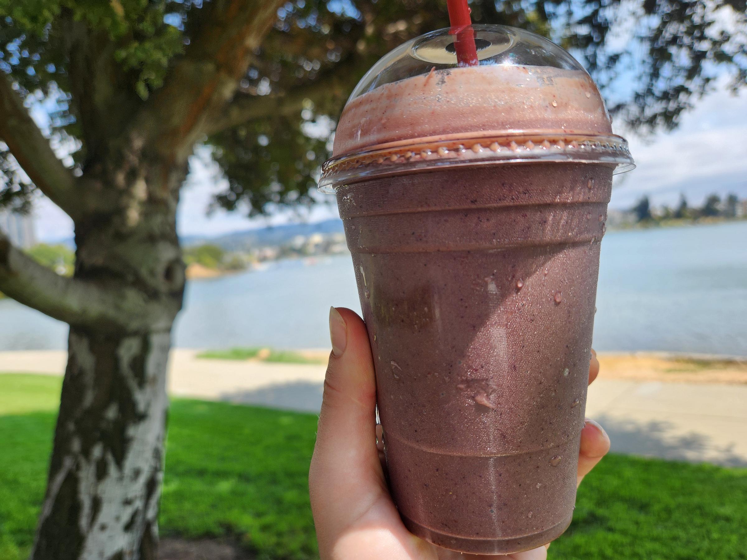Luckilyy for me, the 16-ounce cup had been filled past the brim, leaving more than enough to enjoy despite the donated dump. Listed under the green portion of their smoothie menu, this was banana, berries, spinach, and peanut butter. While I did not anticipate a leaf-colored drink, the hue was a bit of a surprise, and perhaps a stretch for the category. A good way to get your greens if you aren’t keen on chewing them, but as a certified salad head I’ll probably stick to their classic fruity or full-on-green cousins in the future.