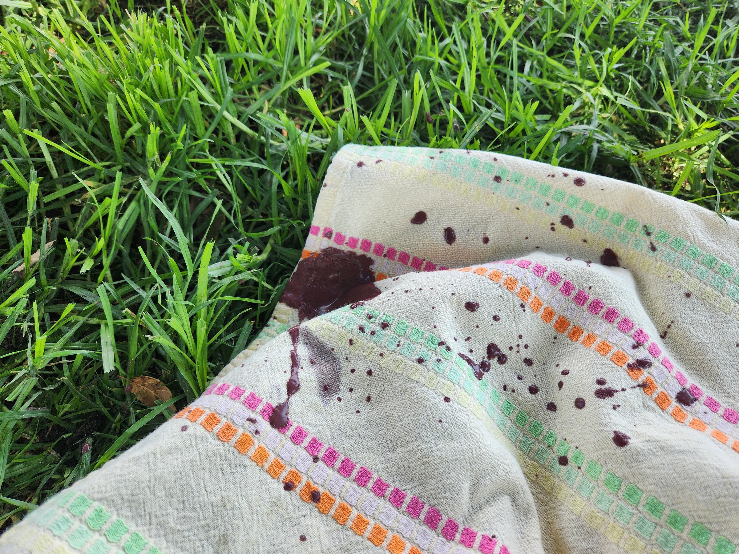 Spoils in hand, a walk to the lake. Some sips snuck in transit, and a perfect oak shading shockingly green crabgrass. Cue the wind, and lots of it. No sooner had I secured the corners of my blanket when a gust topped the berry bev. With the cup righted and lifted and the corner now freed, the thick smoothie splattered; stains flecked far from the initial spill.