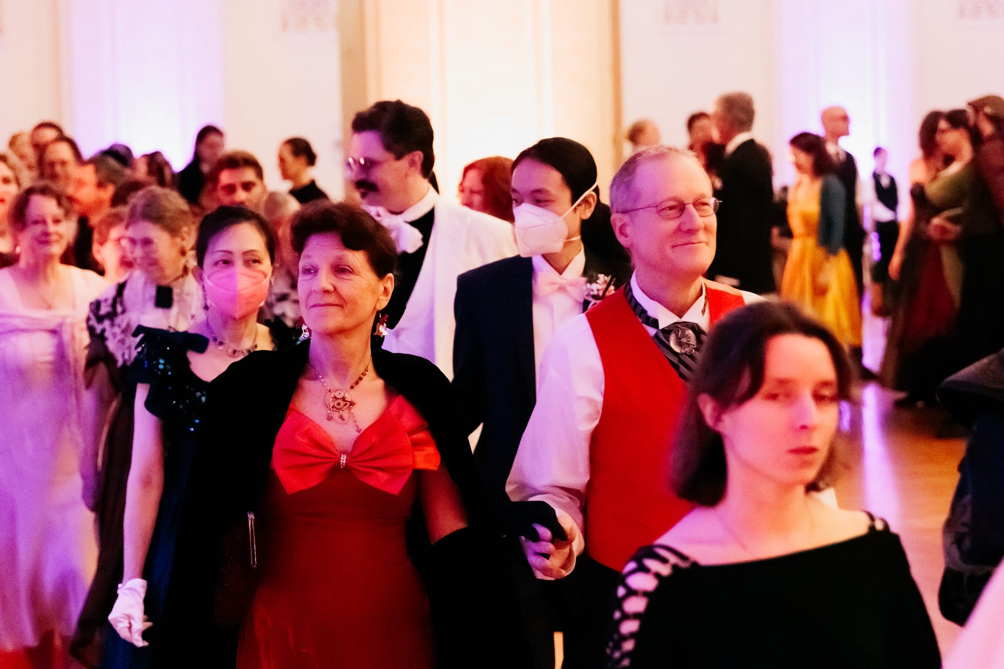 Veterans of the Ball, one of the waltzing couples (pictured above) stood out for their flawless dancing. Their movements were nothing short of poetry, capturing the attention of everyone nearby, their passion for the event evident in the way they moved through the night.