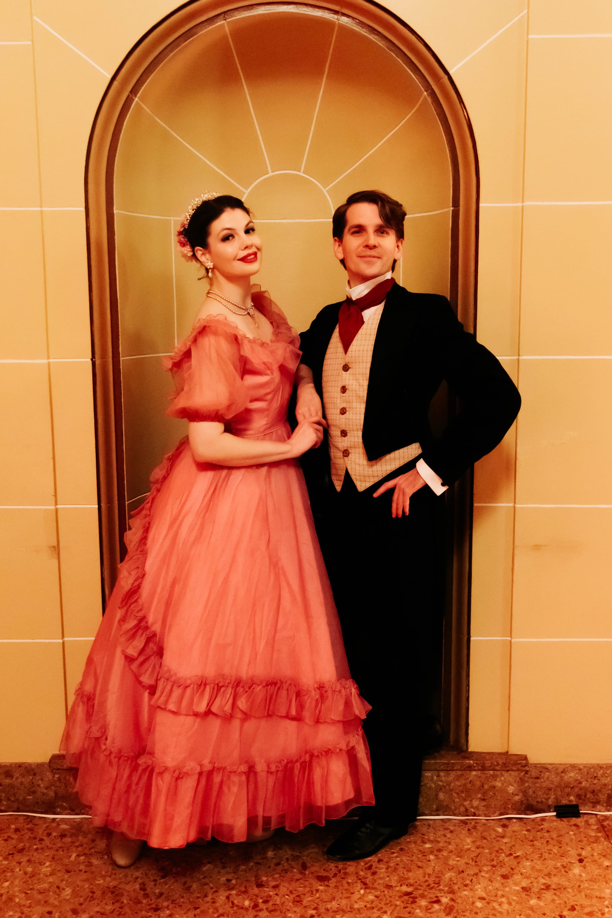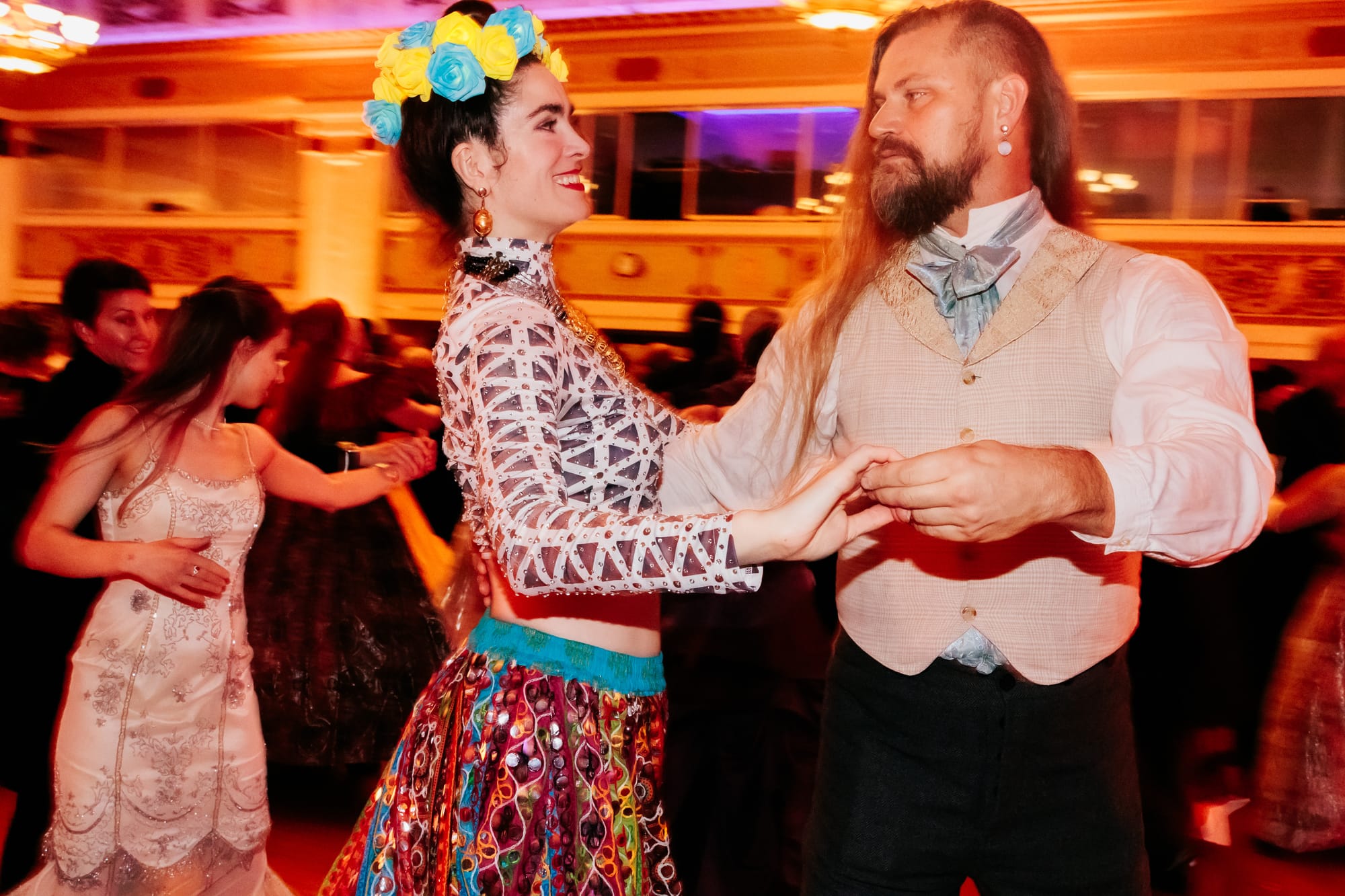 Tickets sold out in record time, and the event organizers were clear that anyone not adhering to the dress code would be turned away. Guests were expected to arrive in period-appropriate attire, or at least very fancy. As I joined the crowd in my blue velvet pants and Edwardian-style jacket, I crossed my fingers, hoping I’d make the cut. A testament to the community’s passion for vintage dance and style, each costume outdid the last.