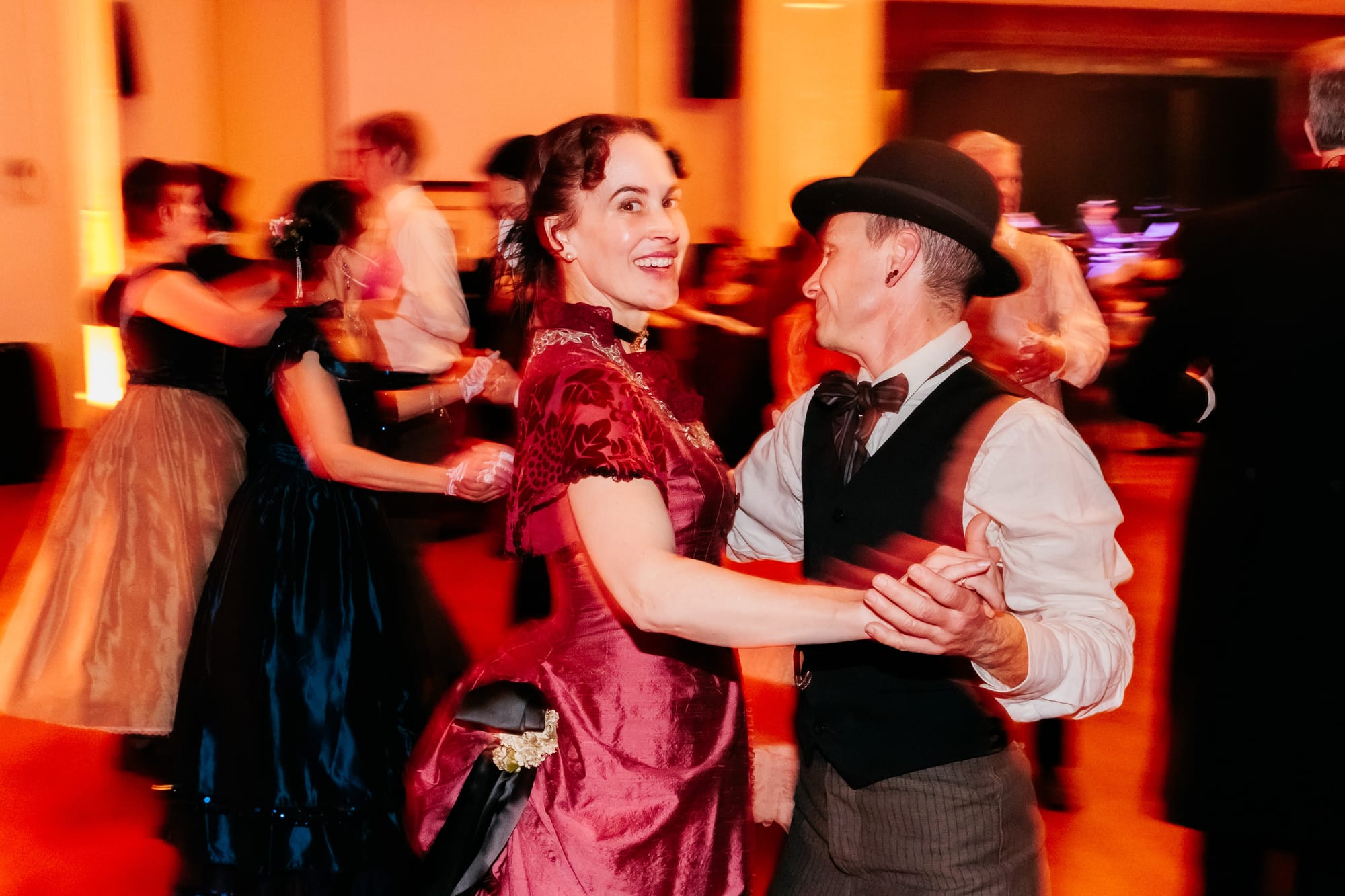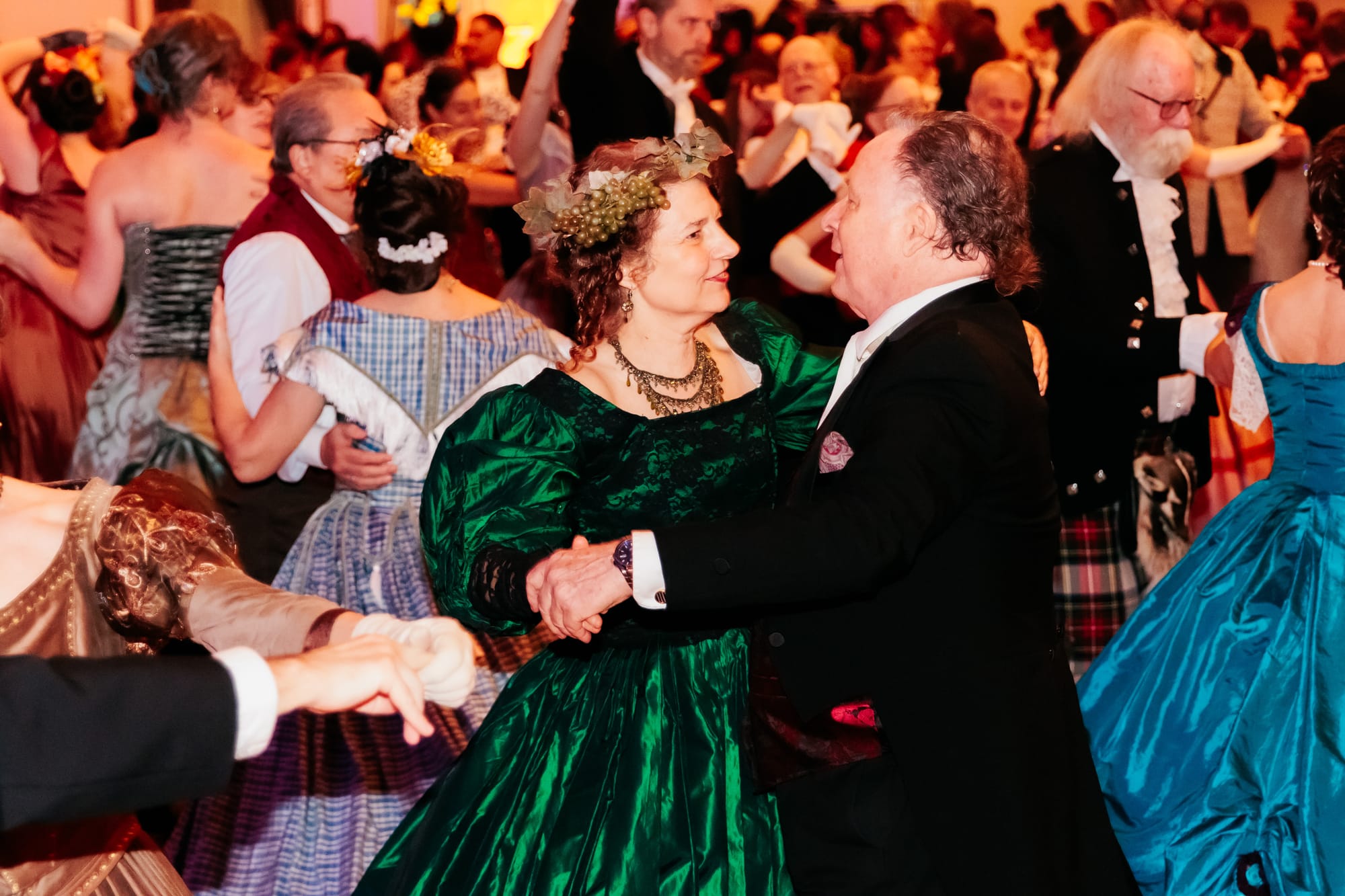 For those who hadn’t yet mastered the steps, the event offered a two-hour dance class earlier in the day, as well as a 30-minute refresher class just before the ball. Led by seasoned instructors Tom Hill, Robert Galloway, and Amelia Thomas, the class covered the basic steps of the Waltz, Polka, and Schottische. My skilled partners kept my two left feet in check, expertly guiding me through each dance without incident.