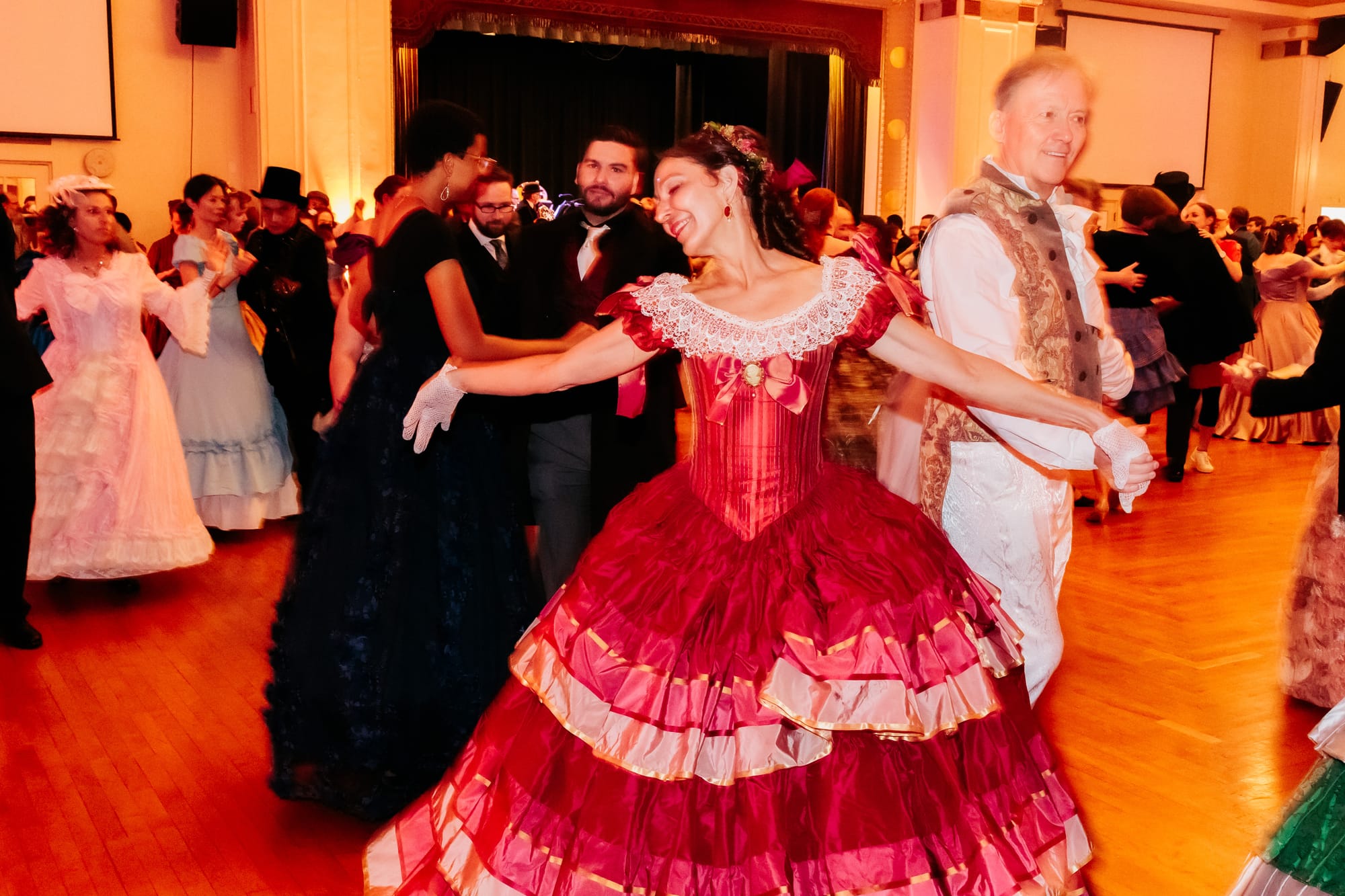 After an eight-year hiatus, the Gaskell Ball made a spectacular return to the Scottish Rite Center on the shores of Lake Merritt. The event rekindled a beloved tradition for vintage dance enthusiasts across the Bay Area. For fans of Mr. Fezziwig's Warehouse at the Great Dickens Fair, the ball’s absence (which began at Mill's College in 1979) had been sorely felt. In 2015, the rising venue costs forced a pause. With the Scottish Rite Center stepping in as host, this year’s event was a much-anticipated revival—and it did not disappoint.
