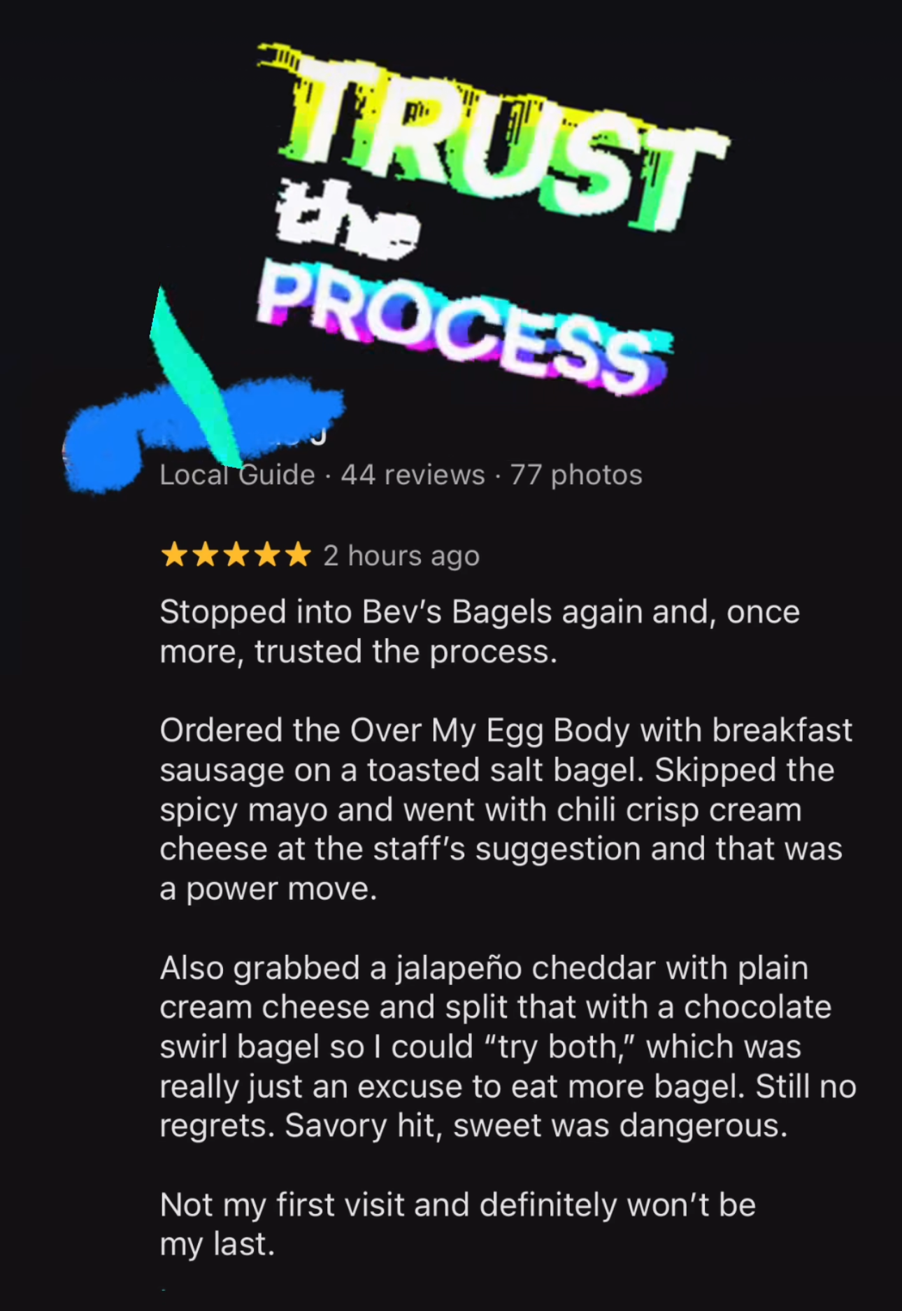 Here’s to trusting the staff behind the counter to lead you to bagel utopia over at Bev’s.