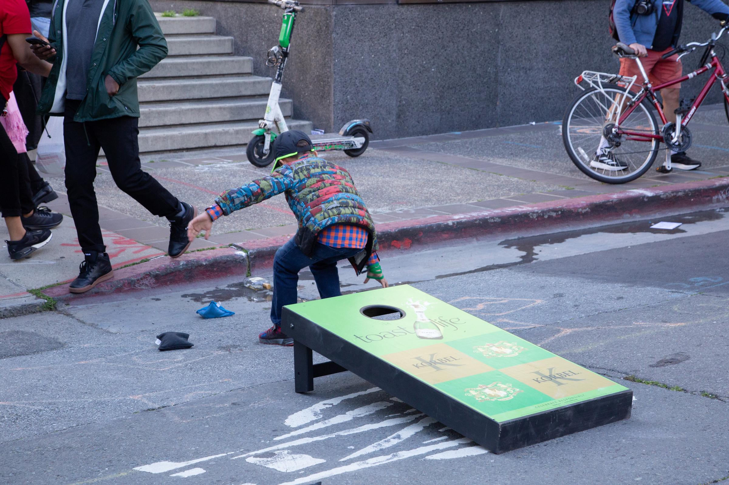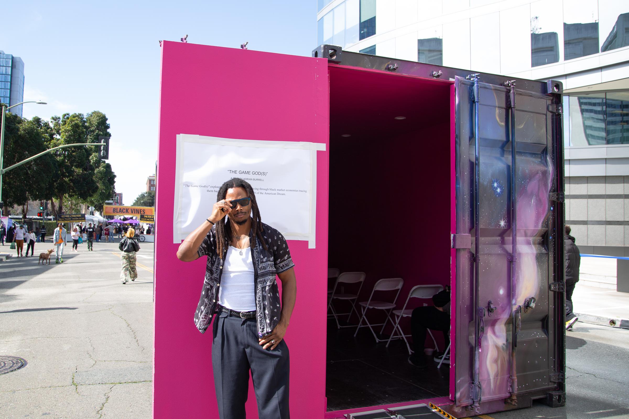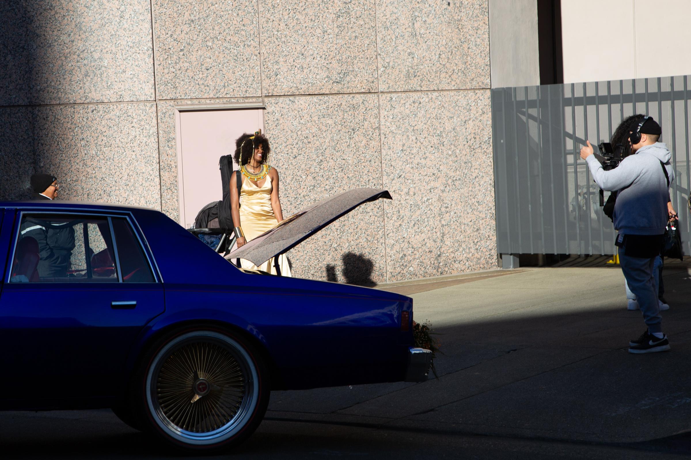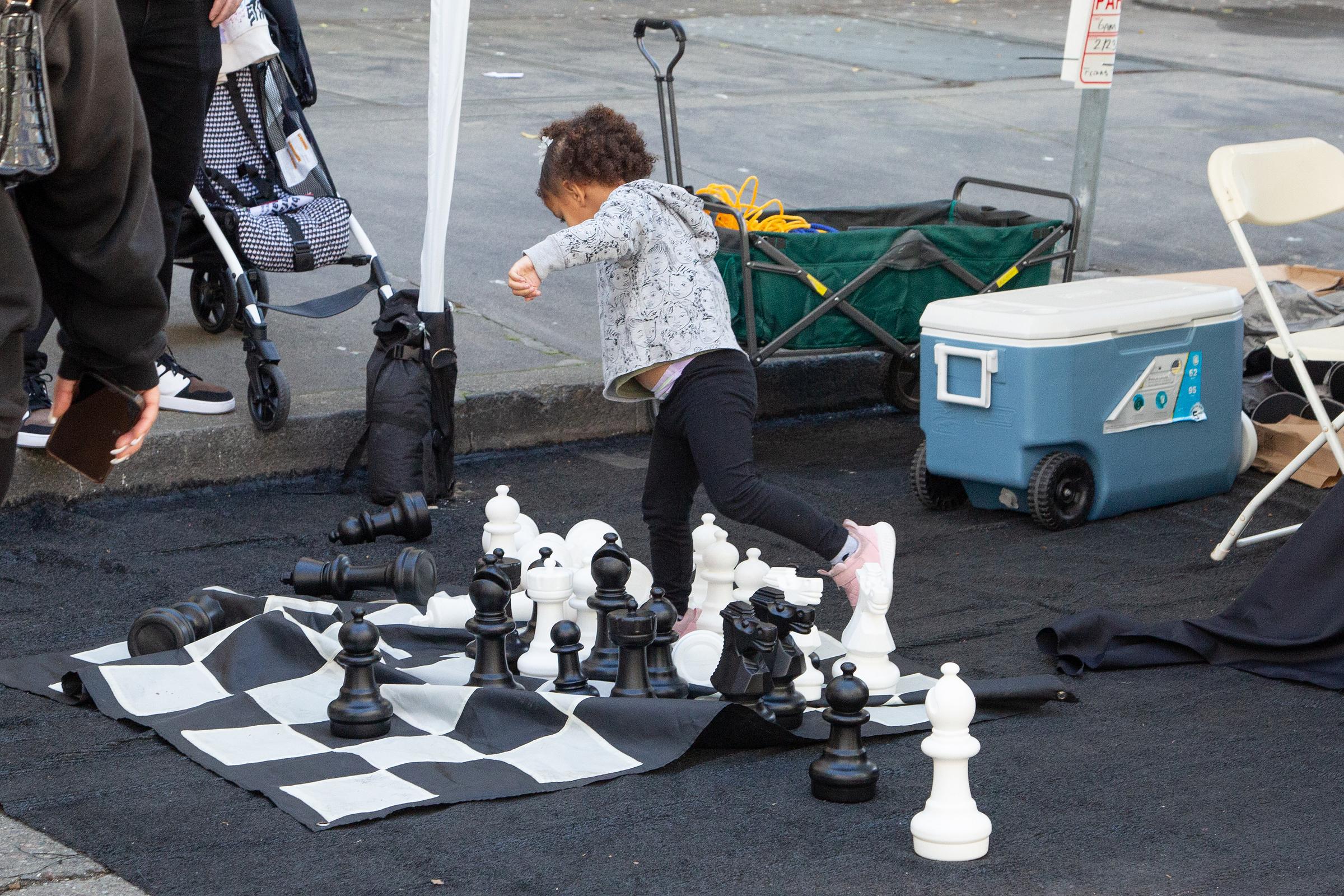 A highly decorated vehicle.The streets before things heated up.The Game God(s) screening chamber with creator.Dr. A and his delicious kava bevs.All in the (vintage) details.Modern touches: an iPhone charger and solo cup.Bijou McDaniel, Oakhella organizer.Shooting joy.Coats Only Collection, Baby.A favorite outfit.A filled out street, later on.A very good hat.Definitely how most folks play.Another great (big) hat— do you sense a themeAlso, big chess (for little people).Regular sized chess, too.Spider king.Golden hour hits.