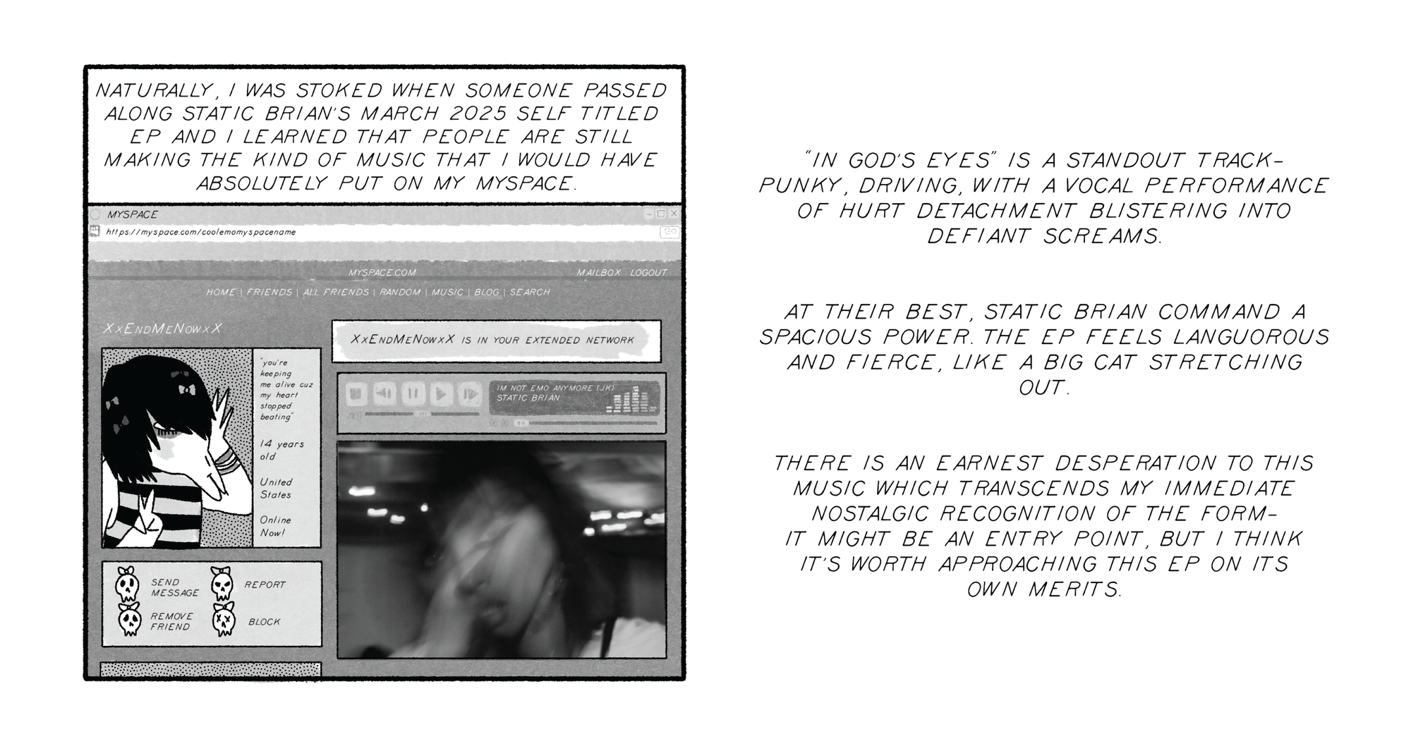 Philadelphia Blistering Into Defiant Screams A fresh emo EP takes cartoonist Izzy True back to the era of Myspace and shopping malls. Izzy True 19 Sep 2025 · 1 min read