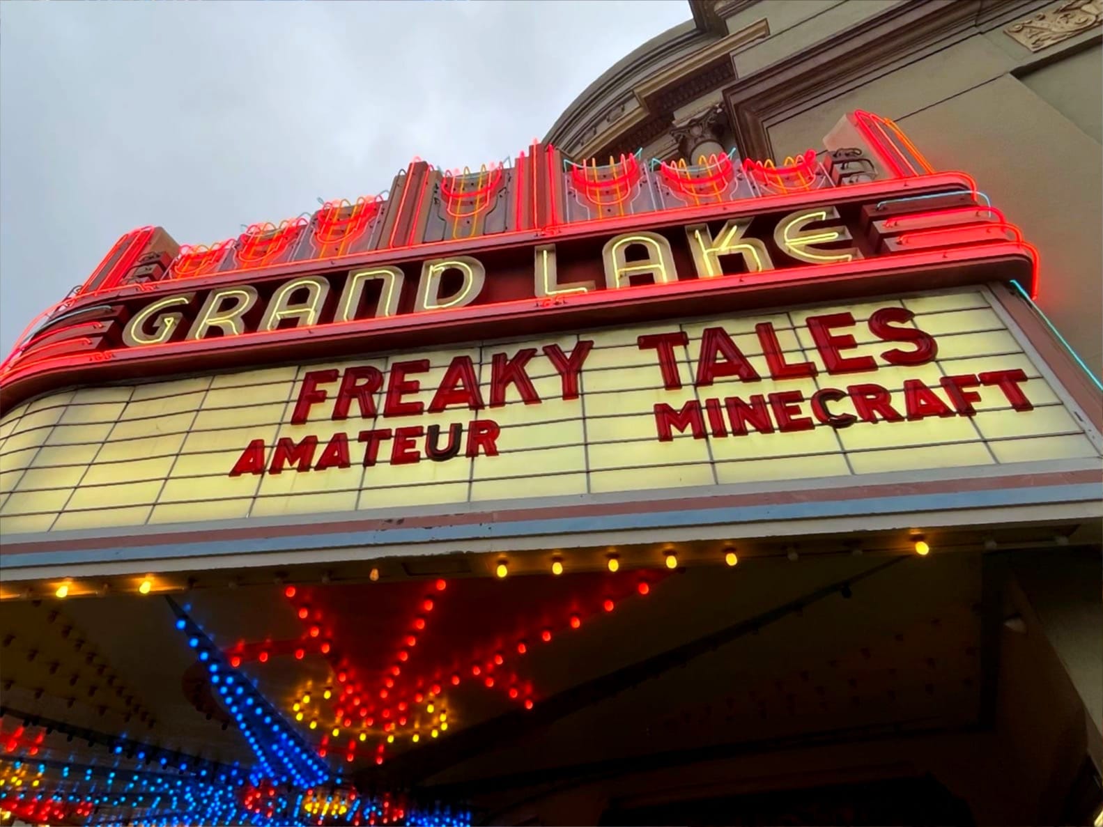 We exited the Grand Lake, just as the punks had in the first scene, and I wanted a photo of the marquee. I spotted a kid who looked oddly familiar. “You look like you were in ‘Freaky Tales’,” I said.