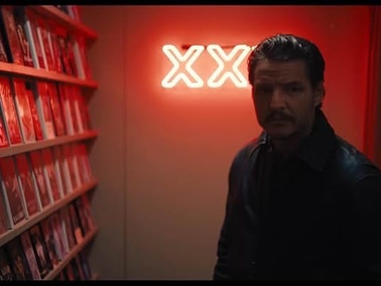The strongest chapter, “Born to Mack,” sees Pedro Pascal as debt collector/enforcer Clint, employee of “The Guy.” He wants to quit a life of crime and focus on his wife who’s pregnant with their first child; but not before one more job. He visits a video store/secret gambling parlor, manned by store owner Hank (Tom Hanks, once an Oaklander himself) who then disappears, replaced by Sam Skolnik (a comic I instantly recognized from a show at Drake’s Dealership last year).