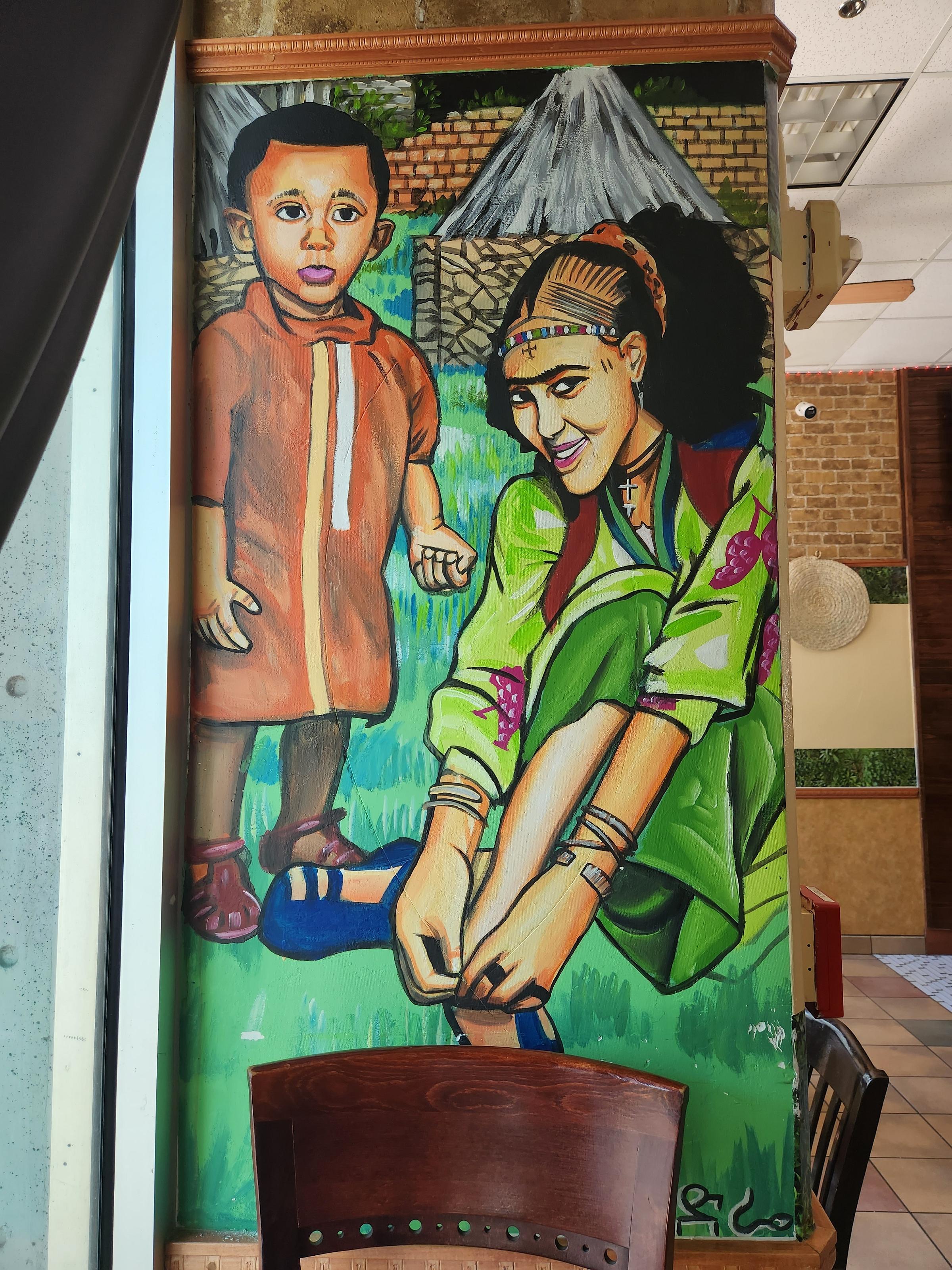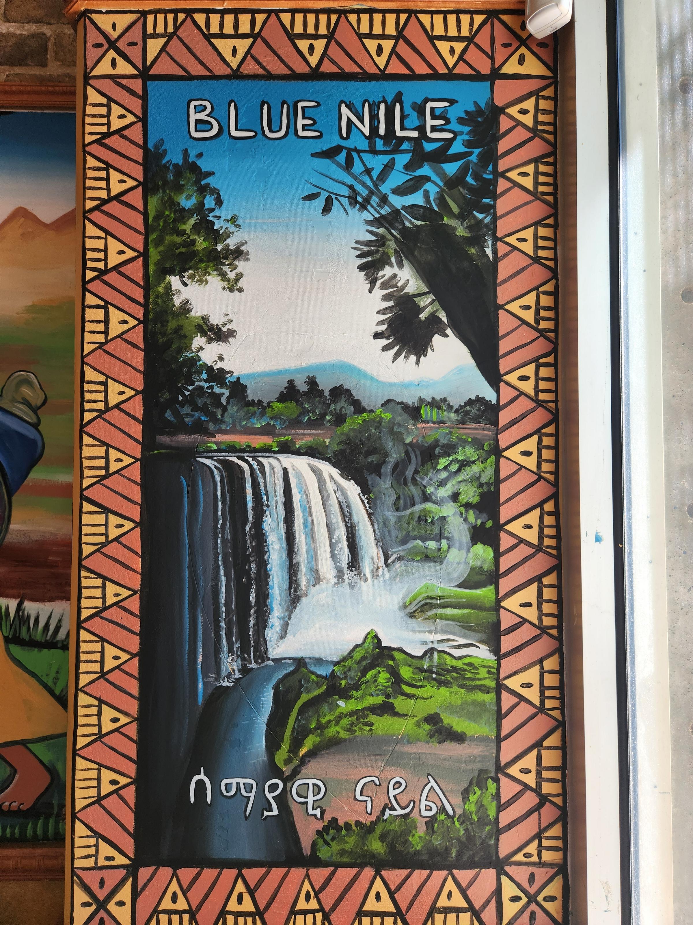 Blue Nile, at 160 14th St. in downtown Oakland, has been open since July of 2018. It gives off a homey and family-run vibe. The space is decorated with several bright murals; the large plate-glass windows lining the front provided a view of a lively scene on the street when I sat there for lunch Sunday afternoon.